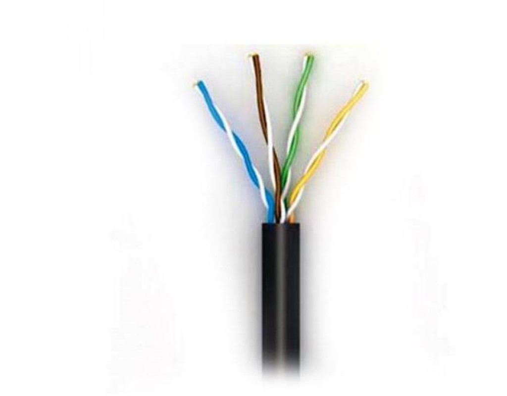 | Струмопровідна жила: мідний м"який дріт Діаметр: 0.51 мм (24 AWG) 2) Ізоляція: поліетилен Діаметр провідника: 0.92 мм Пара: 2 скручених разом провідника Колірна ідентифікація жив: пара 1: біло-синя / синя пара 2: біло-помаранчева / помаранчева пара 3: біло-зелена / зелена пара 4: біло-коричнева / коричнева Сердечник: 4 пари скручені разом 3) Зовнішня оболонка: світлостабілізований поліетилен Колір оболонки: чорний Максимальний діаметр кабелю: 6.7 мм |