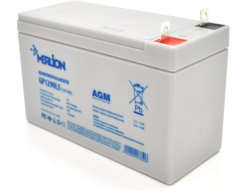 Акумуляторна батарея MERLION AGM GP1290L5 - надійний електричний компаньйон для ваших пристроїв. Володіє герметичним міцним корпусом, який прослужить довго і щасливо. Застосування: - джерела безперебійного живлення