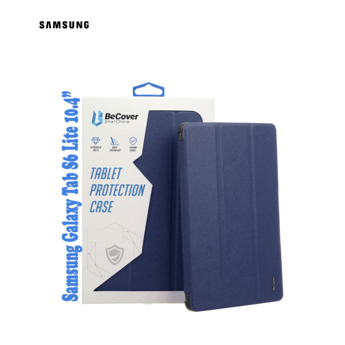 Тип - обкладинка, Сумісність з моделями - Samsung Galaxy Tab S6 Lite 10.4, Samsung Galaxy Tab S6 Lite 10.4 P610, Samsung Galaxy Tab S6 Lite 10.4 P610/P615, діагональ - 10.4, Спосіб кріплення - обкладинка, спосіб закриття - магніт, Матеріал - штучна шкіра, темно-синій