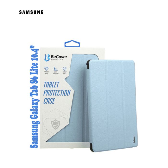 Тип - обкладинка, Сумісність з моделями - Samsung Galaxy Tab S6 Lite 10.4, Samsung Galaxy Tab S6 Lite 10.4 P610, Samsung Galaxy Tab S6 Lite 10.4 P610/P615, діагональ - 10.4, Спосіб кріплення - обкладинка, спосіб закриття - магніт, Матеріал - штучна шкіра, блакитний