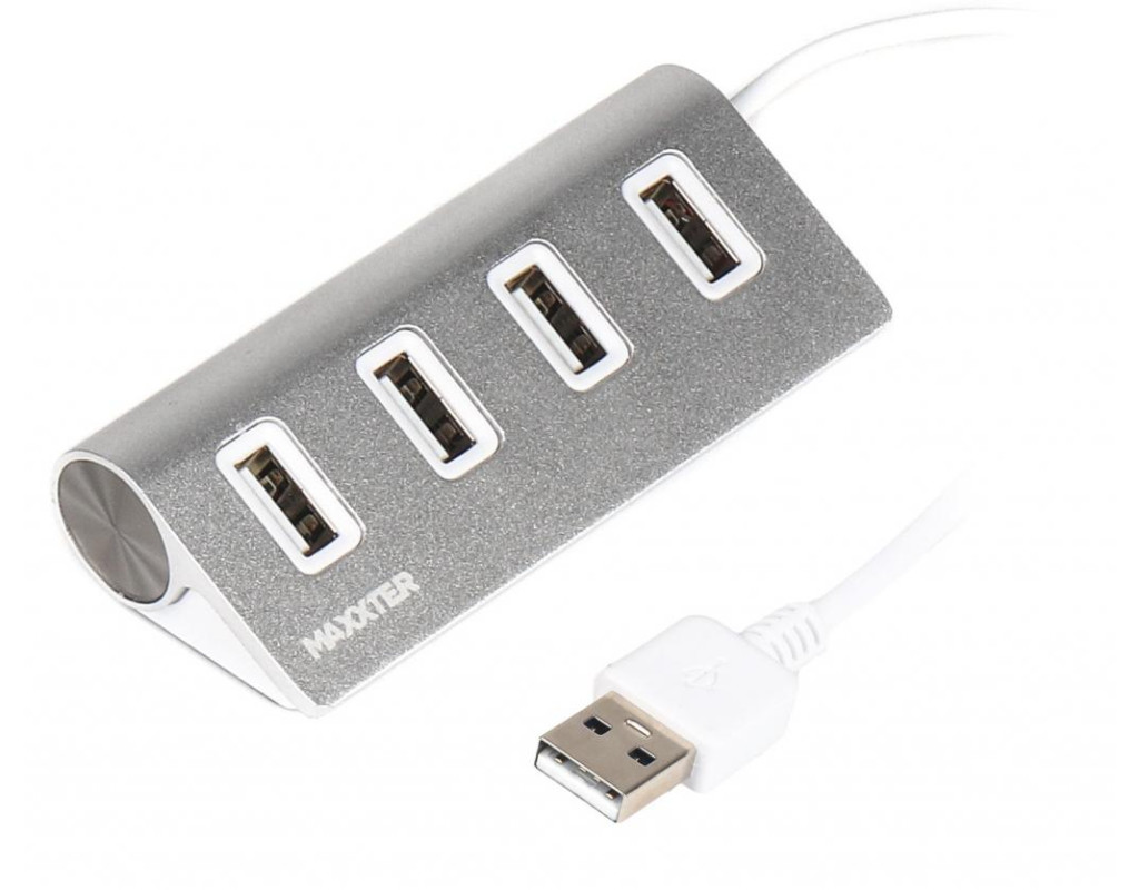 Концентратор Maxxter USB 2.0 Type-A 4 ports silver (HU2A-4P-01)