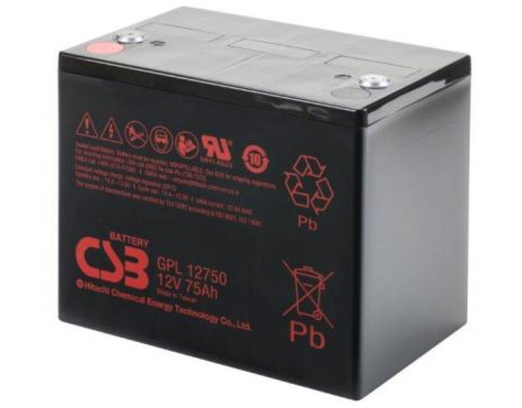 Акумулятор CSB GP 12750 виготовлений з AGM-технології, тому: - батарея не вимагає обслуговування (доливання води); - герметизований корпус, реактивні кисень і водень рекомбінуються повністю (99%), немає кислотного «туману»; - пористі сепаратори зі скловолокна, які ізолюють свинцево-кальцієві електроди один від одного, просочені електролітом; - електроліт знаходиться в стабілізованому стані, його витікання неможливо навіть при пошкодженнях корпусу акумулятора; - внутрішній опір батареї маленький, тому вона не нагрівається при зарядці.