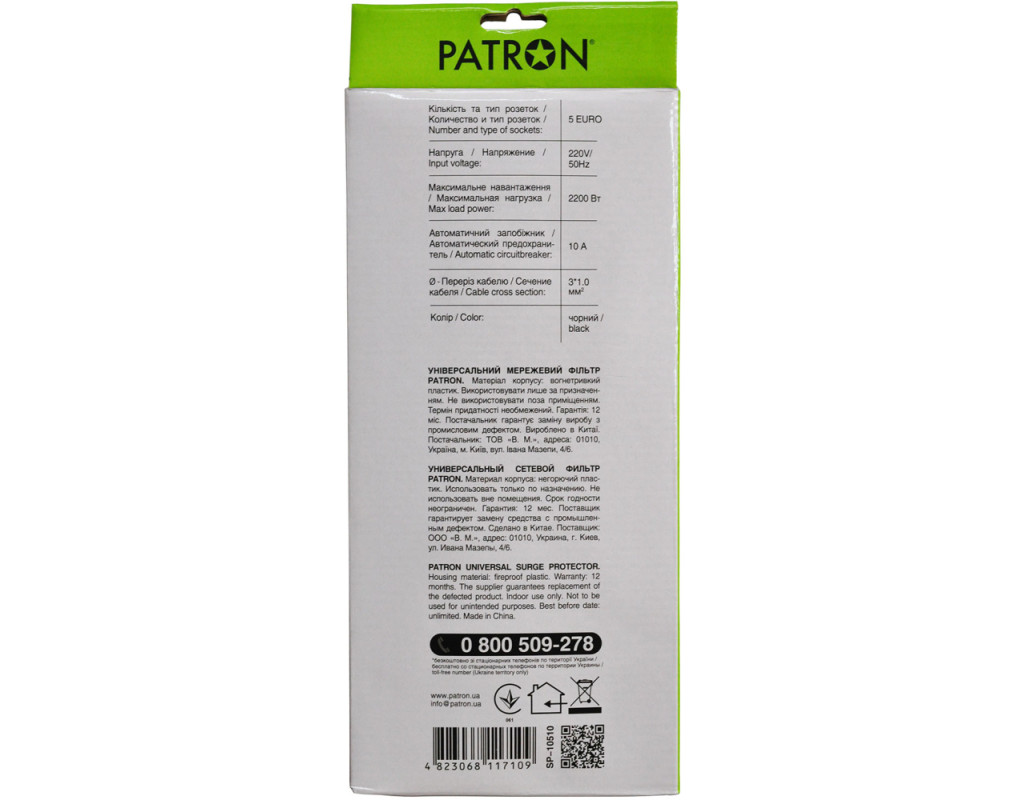 Підкресліть переваги безпеки та зручності, обравши Patron, і будьте впевнені у якісному захисті своїх електроприладів. |