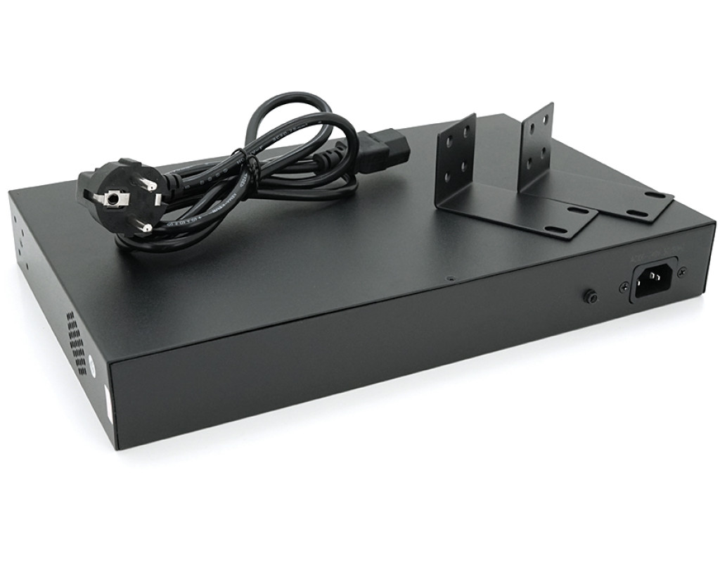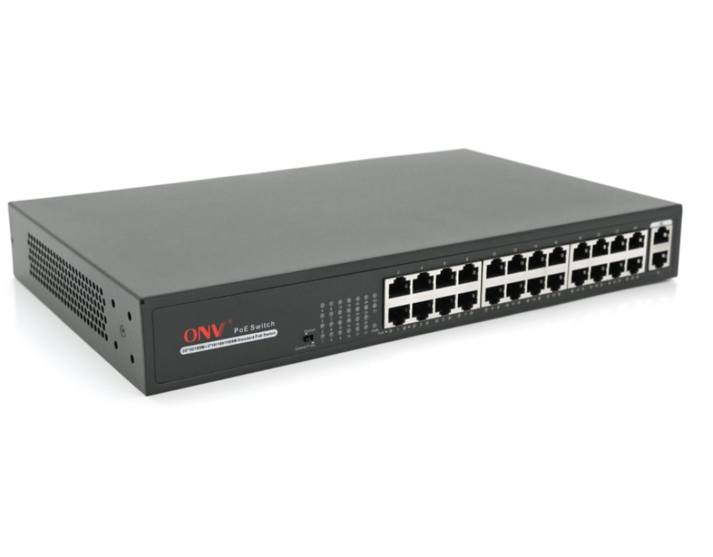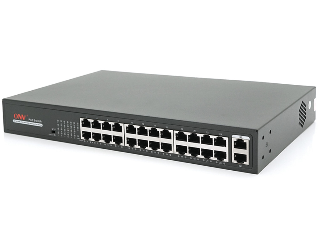 | ONV-H1024PLS – це портативний PoE-комунікатор, розроблений ONV. Має 24 порти 100 М RJ45 і 2х Gigabit uplink порту. Порт 1-24 підтримує IEEE 802.3af / при потужності до 30 Вт. Загальна потужність PoE складає 250 Вт. Як пристрій живлення PoE він може автоматично виявляти та розпізнавати приймаючі PoE пристрої. Підходить для всього середнього та малого бізнесу! ※ 24 порти 10 / 100M RJ45 + 2 порти 10 / 100 / 1000M RJ45 некерований комутатор PoE, 1-24 порти підтримують IEEE 802.3af / at ※ Порт PoE підтримує інтелектуальне розпізнавання AF / AT, стандартна потужність 15,4 Вт / порт, максимальна потужність: 30 Вт / порт, загальна потужність 250 Вт. ※ З перемикачем на великі відстані порти 17-24 підтримують передачу на великі відстані 250 м ※ PoE за замовчуванням 1,2(+) / 3,6(-), альтернатива 4,5(+) / 7,8(-) ※ Вбудований адаптер живлення з монтажними комплектами (вушко для підвіски) ※З функцією VLAN Розмір - 330*204*44мм |