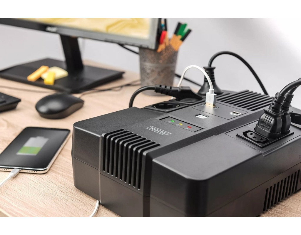| Пристрій безперебійного живлення (ДБЖ) Digitus 600VA DN-170110 — це сучасне рішення для захисту вашої техніки від перебоїв з електропостачанням, характеристиками якого є виняткова надійність та функціональність. Лінійно-інтерактивна архітектура цього ДБЖ забезпечує ефективний захист від відключення електроенергії, перенапруги та інших потенційних пошкоджень, гарантуючи стабільну роботу ваших пристроїв. Цей потужний пристрій забезпечує вихідну потужність у 360 Вт та 600 В*А, що робить його ідеальним вибором як для будинку, так і для офісу. Завдяки апроксимованій (ступінчастій) синусоїді, вихідна напруга цього ДБЖ підходить для більшості побутових і офісних приладів. Вхідна напруга в діапазоні від 162 до 290 В дозволяє DБЖ стабільно функціонувати в умовах нестабільної електромережі. Однією з особливостей моделі є вбудована акумуляторна батарея 12V / 7AH, яка забезпечує вас необхідним часом для збереження важливих даних і безпечного завершення роботи в разі раптового вимкнення електроенергії. Компактний дизайн дозволяє економити простір, і DБЖ можна встановити як на підлозі, так і на стіні. Завдяки функції автоматичного регулювання напруги AVR, ваші пристрої завжди отримують стабільну напругу, що захищає від потенційних пошкоджень через перенапруги. Додатковий фільтр RJ-45 забезпечує захист мережевих кабелів, а підтримка з'єднання через USB дозволяє легко інтегрувати ДБЖ у вашу систему. Цей ДБЖ оснащений чотирма Euro-розетками та трьома IEC розетками, що робить його максимально зручним для підключення різноманітної техніки. Серед інших переваг — захист від перевантаження, розрядки і перезарядки, що значно продовжує термін служби пристрою. Функціонал "холодного старту" дозволяє вам увімкнути прилади навіть у разі відсутності електрики, що додає ще один рівень надійності. Звучання сповіщень та сигналів цього ДБЖ дозволяє організувати своєчасні дії у випадку аварійних ситуацій. Обираючи ДБЖ Digitus 600VA DN-170110, ви отримуєте надійний захист, що значно поліпшує безпеку та продуктивність вашої техніки. Інвестуйте у безперебійність і захист ваших важливих даних та дорогих пристроїв, використовуючи високоякісний ДБЖ від Digitus. |