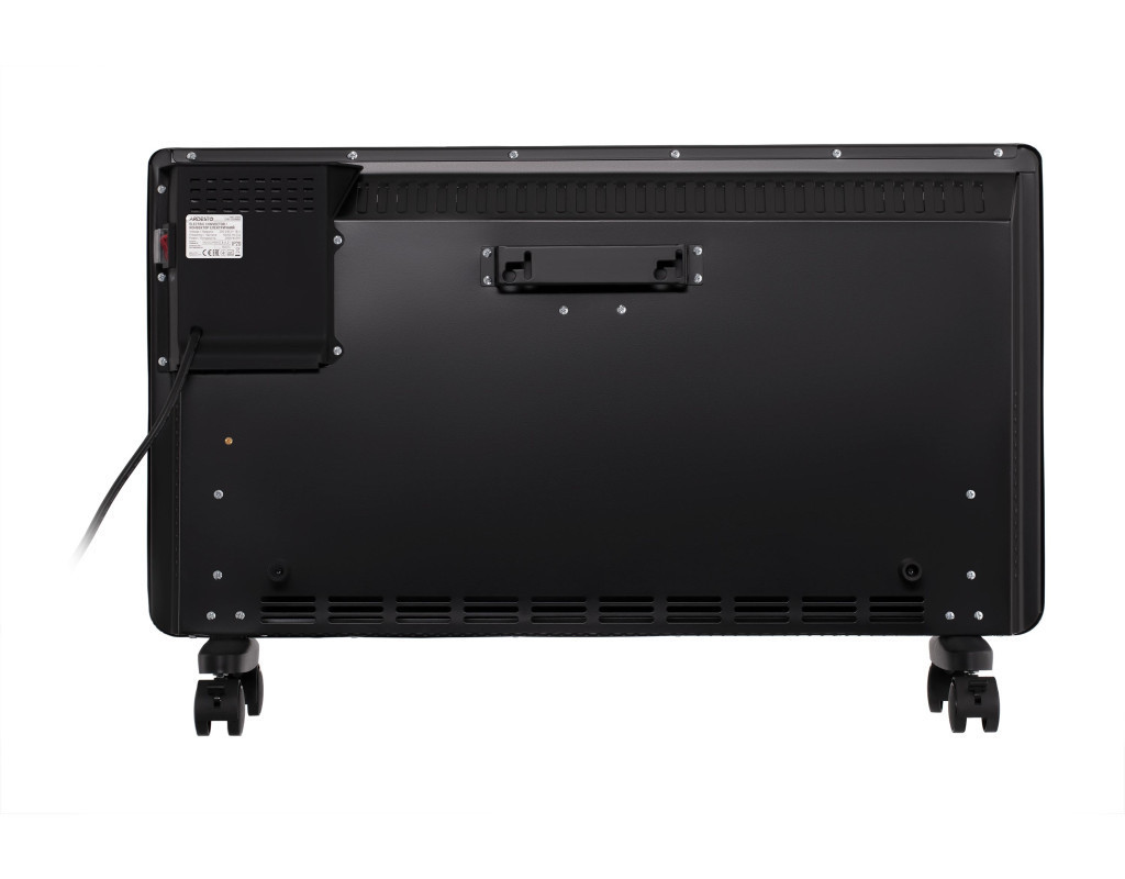 | Електричний конвектор із механічним керуванням чорного кольору, класом захисту IP20 і двома режимами потужності 1 000/2 000 Вт. Оснащений регульованим термостатом і розрахований на обігрів приміщень площею до 20 м2. Клас енергозахисту – перший. У цій моделі передбачено сушку та контейнер для природного зволоження повітря. Є захист від перегріву та датчик від перекидання. Ця модель обігрівача має два типи монтажу – настінний і підлоговий. Кронштейни та опори із коліщатками для підлогового встановлення постачають у комплекті з обігрівачем. |