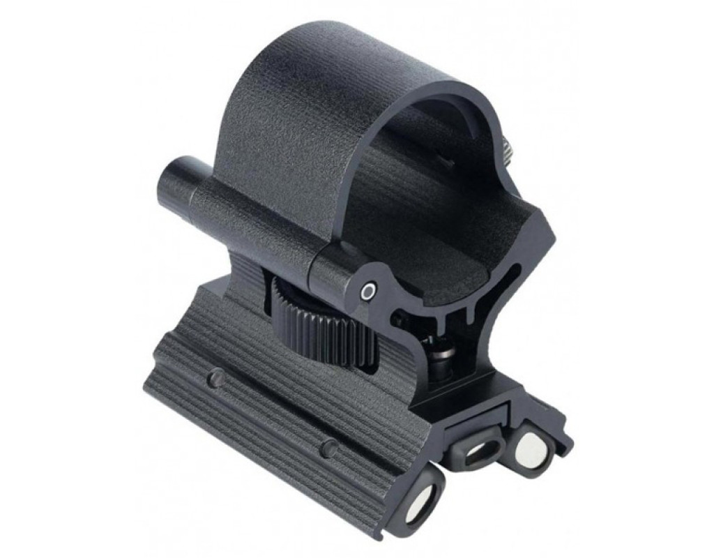 Даний аксесуар має гумове покриття на магнітах в районі фіксації, яке забезпечує надійне кріплення і не дозволяє ковзати при сильній віддачі по стволу. Також, внутрішньо посадочне кільце, для фіксації тіла ліхтаря, має гумову верхню і поролонову нижню накладки, утримуючи ліхтар не пошкоджуючи його покриття. У комплекті з кріпленням поставляються також дві пари додаткових пластикових прокладок- для підгонки кріплення під діаметр ліхтаря. Основна відмінність 3-го покоління від попереднього полягає в наявності додаткового (третього) магніту, що сприяє ще більш надійного закріплення на зброї. |
