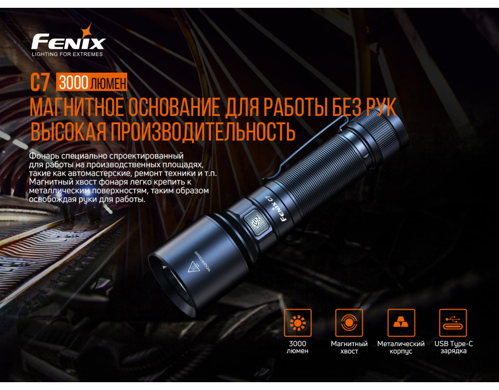 | Ліхтар Fenix C7 – це високотехнологічна ручна модель, призначена для промислових завдань та активного відпочинку. Застосування діода Luminus SST70 гарантує феноменальну яскравість у 3000 люменів, що забезпечує видимість до 470 метрів в турбо-режимі. Ліхтар Fenix C7 працює від високоякісного літій-іонного акумулятора ємністю 5000 мАг, що дозволяє використовувати його до 68 годин при найекономнішому режимі. Завдяки USB Type-C ви легко зможете зарядити його протягом трьох годин. Ця модель має семи режимів яскравості, серед яких: Turbo, High, Med, Low, Eco, Strobe і SOS. Незалежно від обраного режиму, ліхтар забезпечує надійну роботу в будь-яких умовах завдяки класу захисту IP68. Це робить його стійким до пилу, води та ударів з висоти до одного метра. Магнітна основа дозволяє зручно фіксувати ліхтар на металевих поверхнях, звільняючи при цьому руки для інших завдань. Інноваційні функції, такі як індикатор рівня заряду та автоматичний захист від перегріву, надають користувачеві впевненості в роботі пристрою. Ліхтар здатний запам'ятовувати останній режим освітлення, що робить його використання ще більш інтуїтивним. У разі необхідності, пристрій можна легко блокувати, натиснувши на кнопку двічі, що убезпечує його від випадкового увімкнення. Корпус ліхтаря виконано з високоякісного алюмінію марки А6061-Т6, оснащеного антиабразивним покриттям з твердим анодуванням третього ступеня. Це гарантує його довговічність і міцність, навіть у складних умовах експлуатації. Довжина пристрою становить 149 мм, а вага — всього 172 г, що робить його легким і зручним у використанні. Кліпса на корпусі ліхтаря Fenix C7 дозволяє легко прикріпити його до поясу або кишені, що особливо зручно під час туристичних походів або спортивних заходів. У комплект входить кабель для зарядки, темляк, запасне ущільнювальне кільце, інструкція та гарантійний талон. Ліхтар Fenix C7 – це не просто джерело світла, а надійний партнер у різноманітних умовах, здатний забезпечити неперевершену якість освітлення завдяки збалансованому поєднанню інноваційних технологій і практичності у використанні. |