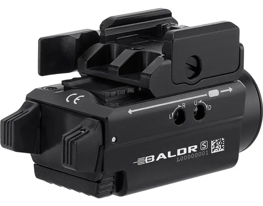 Olight Baldr S — підствольний ліхтар нового покоління, що поєднує компактність і мінімальну вагу. Модель є вдосконаленою версією Baldr Mini, має ширший функціонал, проте зовні змін практично не зазнала. Ліхтар оснащений сучасним світлодіодом High Perfomance Cool White Led. Модель Baldr S має два режими яскравості: на 800 Lm та на 100 люмен, чого раніше не було на жодному з ліхтарів серії PL та Baldr. Дальність світлового променя — 130 метрів, що дозволяє використовувати ліхтар не тільки в закритих приміщеннях, а й на відкритих майданчиках. Для того, щоб зменшити габарити ліхтаря і зробити його компактнішим, інтегрований ЛЦУ зеленого кольору розташований безпосередньо над самим діодом.Baldr S оснащений вбудованим Li-Po акумулятором ємністю 380 mA/h. Наявність фірмової магнітної зарядки дозволяє заряджати ліхтар, не знімаючи його зі зброї. Модель встановлюється на планку Weaver/Picatinny за допомогою інтегрованого кріплення з можливістю регулювання положення нижньої частини ліхтаря, що буде актуальним для власників короткоствольної зброї або спецзасобів для відстрілу патронів несмертельної дії. Зручне легкознімне кріплення не заважає активувати ліхтар за допомогою кнопок, розміщених на торці. |
