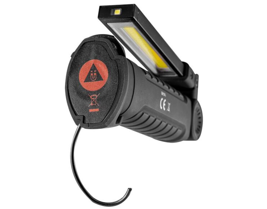 | Ліхтар NEO, 2 в 1, USB, 1200мАгод, 3.7 Li-ion, 3Вт, 200 люмен, LEDCOB, 5 функцій освітлення, складається, IP20. Акумуляторна лампа для майстерні зі світловим потоком 200 люмен та потужністю 3Вт оснащена світлодіодами високого класу LED COB. Виріб можна використовувати як лампу, так і ліхтар. Має 5 функцій освітлення: ліхтар/лампа 100%/лампа 50%/лампа червоне світло/лампа червоне світло стробоскоп. Складана конструкція дозволяє складати виріб до компактних розмірів. Відповідність європейським стандартам безпеки підтверджено сертифікатом CE. |