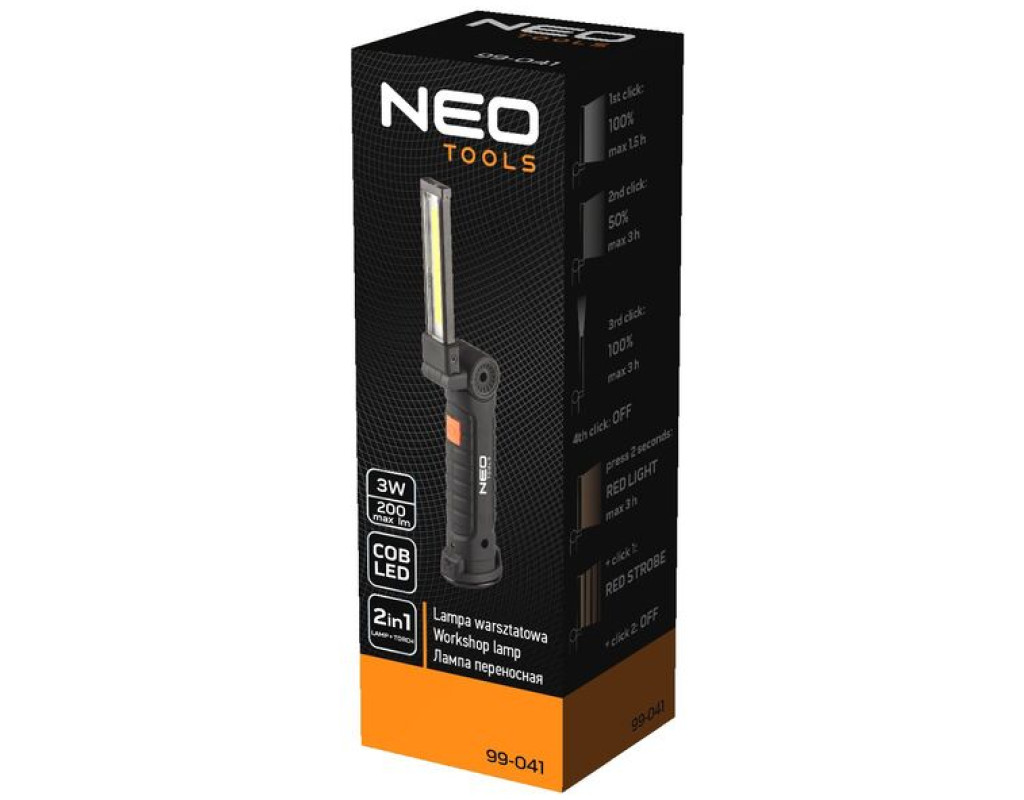 | Ліхтар Neo Tools 99-041 — це ідеальний інструмент для тих, хто прагне надійного і функціонального освітлення. Цей інспекційний ліхтар поєднує в собі сучасні технології та високу ефективність, щоб забезпечити максимальний комфорт під час роботи у різноманітних умовах. Висока якість — одна з головних переваг цього виробу. Завдяки COB LED як джерелу світла, ліхтар забезпечує яскравість у 200 люмен, що є достатнім для освітлення як невеликих, так і більш просторих приміщень. Освітлення залишається стабільним і надійним навіть у вологих умовах, оскільки корпус має захист від вологи, що відповідає класу захисту IP20. Ще однією унікальною особливістю ліхтаря Neo Tools 99-041 є його універсальність завдяки п'яти режимам яскравості: білий 50%, білий 100%, червоне світло, та червоний стробоскоп. Така функціональність дозволяє адаптувати освітлення відповідно до конкретних потреб та умов роботи. Червоне світло особливо корисне у ситуаціях, коли потрібно зберегти нічний зір або привернути увагу. Зручне заряджання здійснюється через порт micro USB, що робить цей ліхтар незамінним супутником у довгих поїздках та подорожах, де доступ до електричної мережі може бути обмеженим. Вбудований акумулятор типу Li-Ion на 3.7 В забезпечує тривалу роботу без необхідності частого підзаряджання. Корпус ліхтаря виготовлено з міцного пластику, що не лише знижує його вагу, а й сприяє довготривалій експлуатації у різних умовах. Завдяки магнітному оснащенню, ліхтар можна легко закріпити на металевих поверхнях, звільняючи ваші руки для інших завдань. <К олір чорного корпусу надає ліхтарю стильний та сучасний вигляд, а його складана конструкція дозволяє компактно складати виріб для зручного зберігання та транспортування. Ця властивість особливо актуальна для майстрів та професіоналів, яким необхідний надійний інструмент під рукою. Завершуючи, варто зазначити, що ліхтар Neo Tools 99-041 відповідає суворим європейським стандартам безпеки, підтвердженим сертифікатом CE. Це робить його безпечним і надійним вибором для будь-яких завдань, що потребують якісного освітлення. Вибираючи цей ліхтар, ви обираєте якість, надійність і сучасний дизайн в одному виробі. |