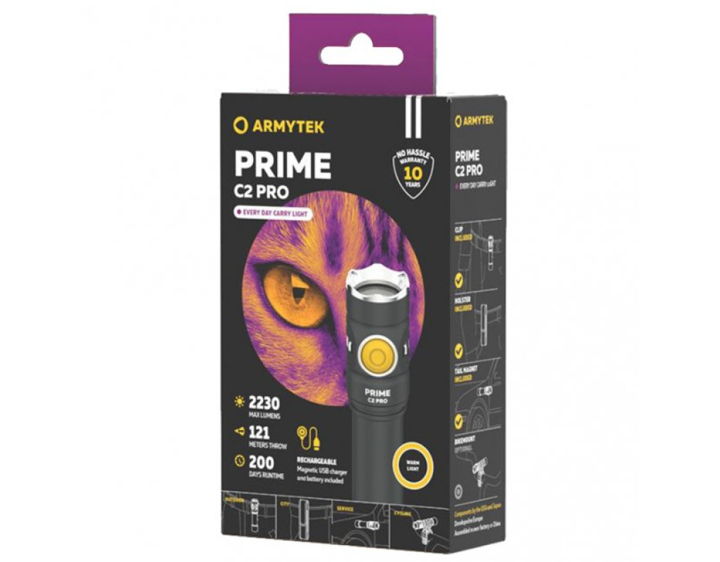 Ця модель здатна працювати в одному з одинадцяти доступних режимах роботи. Вага ліхтаря без елементів живлення становить лише 62 грами. Як елемент живлення необхідно використовувати один акумулятор типу 18650, який йде вже із заводу виробника в комплекті з ємністю 3200 мАг. У ліхтарі Armytek Prime C2 PRO XHP35 Magnet USB передбачено захист від перегріву, від зворотної полярності, а також від неправильної установки джерел живлення. З додаткових "фішок" можна відзначити кольорову індикацію низького рівня заряду, а також активний контроль температури, що важливо за таких порівняно малих габаритів і великої яскравості. |