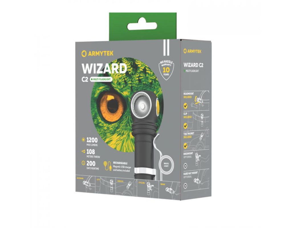 | Ліхтар Armytek Wizard C2 Marnet USB White (F08901C) — це інноваційне рішення для тих, хто шукає надійне, зручне та високоефективне джерело світла. Створений інженерами канадської компанії, цей портативний, налобний та інспекційний ліхтар поєднує у собі передові технології, які забезпечують максимальну функціональність у різноманітних умовах. Основу моделі Armytek Wizard C2 становить потужний світлодіод Samsung LH351D, що вражає яскравістю в 1200 люмен. Завдяки вдосконаленій TIR-оптиці, ліхтар видає чистий і рівномірний світловий потік, здатний освітлювати простір до 108 метрів. Кут бічного засвічення у 120° дозволяє ефективно охоплювати великі території, що робить цей пристрій ідеальним для використання на природі, у походах, під час риболовлі або у повсякденному побуті. Легкість та надійність використання Armytek Wizard C2 забезпечуються зручним кріпленням на голову і максимальним комфортом для користувача. В його конструкції використовується космічний анодований алюміній з III типом покриття, що захищає корпус від ударів і витримує падіння з висоти до 10 метрів. Що ще важливіше, клас захисту IP68 гарантує повну захищеність від вологи, пилу та бруду — ліхтар продовжить працювати навіть на глибині до 10 метрів. Завдяки вдосконаленій системі управління з багатобарвною індикацією стану, налобний ліхтар легко перемикає режими. Усього їх 11, включаючи турбо, стробоскоп, середній, економ, максимальний та мінімальний, що дозволяє вибрати оптимальний режим у будь-якій ситуації. Чудовим доповненням є захист від короткого замикання, що діє навіть у разі контакту зарядного магніту з металом, а також захист від випадкового ввімкнення. Ліхтар Armytek Wizard C2 Marnet USB має акумуляторну батарею Li-Ion типу 18650 з можливістю заряджання завдяки швидкісному магнітному кабелю micro USB. Не виймаючи елемент живлення, ви можете миттєво підключити пристрій до зарядки або, за потреби, дістати акумулятор і зарядити його окремо. Під час зарядки та у робочому режимі ліхтар також оснащується індикатором температури, що активно захищає його від перегріву. Потужний магніт на задній кришці дозволяє кріпити пристрій до металевих поверхонь, що додає універсальності у використанні. Використовуючи ліхтар, користувачі можуть вільно обертати його на 180°, націлюючи світло у потрібному напрямку. Armytek Wizard C2 Marnet USB — це не просто ліхтар налобний. Це елегантний, сучасний та високотехнологічний інструмент, що відповідає на високі вимоги професіоналів і любителів активного відпочинку. Він ідеально підходить для роботи у важкодоступних місцях, експедицій у печери чи гори, велопрогулянок і спеціальних індустріальних завдань. Завдяки своїй унікальній конструкції та надійним технологіям, Armytek Wizard C2 стане незамінним помічником у будь-яких умовах. |
