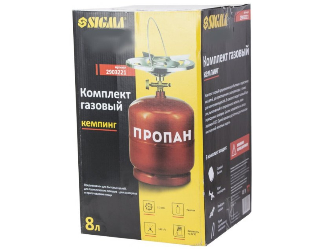 Комплект газовий кемпінг 8 л SIGMA (2903221). Підготовка до роботи: - 1. Вийміть комплект з паковання