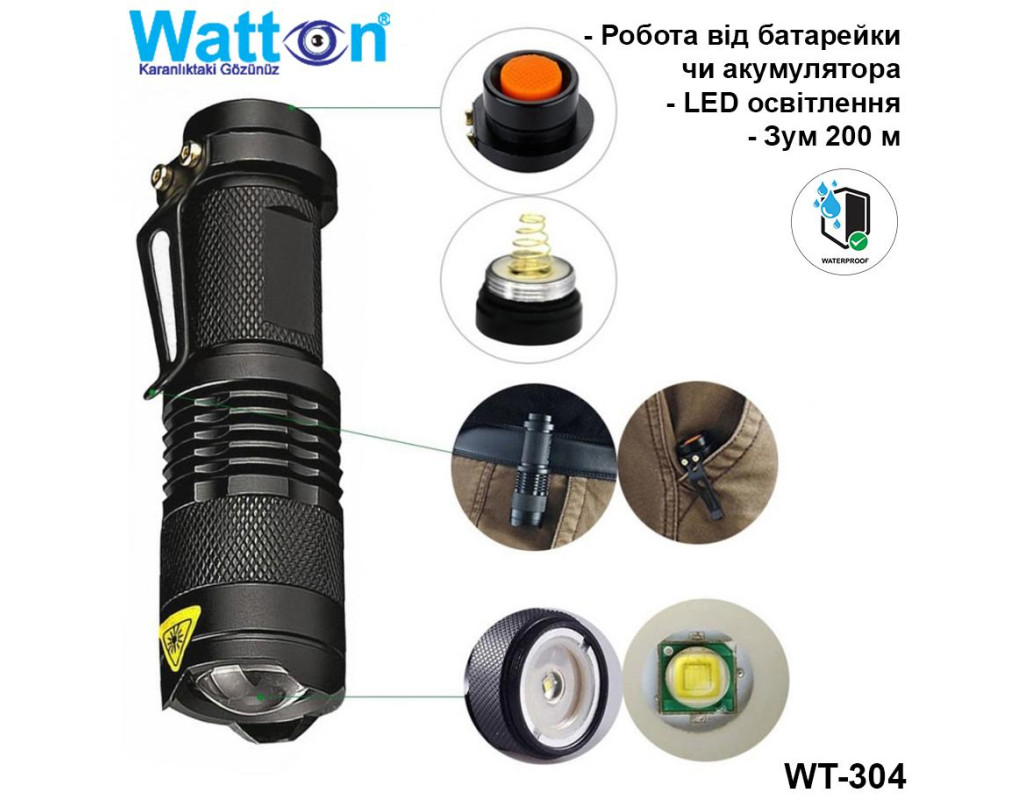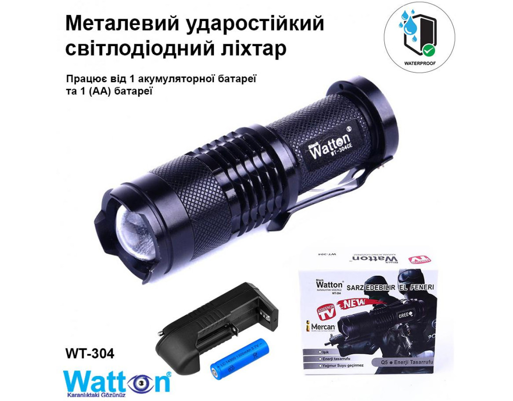 | Ліхтар Watton WT-304 – це сучасний та надійний інструмент, який ідеально підходить для тих, хто цінує компактність та багатофункціональність. Цей тактичний ручний ліхтар забезпечує надзвичайну яскравість завдяки використанню високоякісного світлодіода Cree XR-E Q5. Потужність світлового потоку в 500 люменів та здатність освітлювати дистанцію до 200 метрів роблять його незамінним помічником в умовах обмеженої видимості. Однією з ключових особливостей Watton WT-304 є унікальна функція ZOOM, що дозволяє регулювати фокус променя від широкої плями до вузькоспрямованого пучка. Це досягається шляхом легкого висування головної частини ліхтаря, що додає зручності в користуванні. Ліхтар пропонує три режими яскравості: середній, максимальний і мінімальний, що дозволяють налаштувати освітлення в залежності від потреб. Watton WT-304 виготовлено з високоякісного анодованого алюмінію, що забезпечує відмінний захист від ударів, вологи та пилу. Це дозволяє використовувати ліхтар навіть в найскладніших умовах, а спеціальне антиковзне покриття додає зручності у використанні. Його компактні габарити – довжина лише 9 см – та мізерна вага у 65.6 г роблять цей ліхтар ідеальним супутником в мандрівках чи екстремальних подорожах. Живитися Watton WT-304 може як від літій-іонного акумулятора 14500, так і від звичайної батарейки AA, що надає додаткову гнучкість у використанні. Ліхтар оснащений кліпсою для зручного кріплення до одягу або спорядження. Крім того, ущільнювальні гумові кільця на нарізних з'єднаннях захищають від проникнення вологи та пилу, зберігаючи електроніку сухою і безпечною. Watton WT-304 – це вдале поєднання високої якості, функціональності та естетичності. Його чорний колір додає стилю та строгого вигляду. Цей компактний і потужний ліхтар не лише стане надійним партнером у вашій щоденній рутині, але й займе мало місця в кишені або дамській сумочці. Отже, Watton WT-304 чудово підійде для любителів активного відпочинку, мисливців, рибалок, туристів, а також стане в нагоді вдома на випадок непередбачуваних ситуацій. Зробіть правильний вибір для забезпечення свого комфорту та безпеки завдяки цьому універсальному і надійному пристрою. |