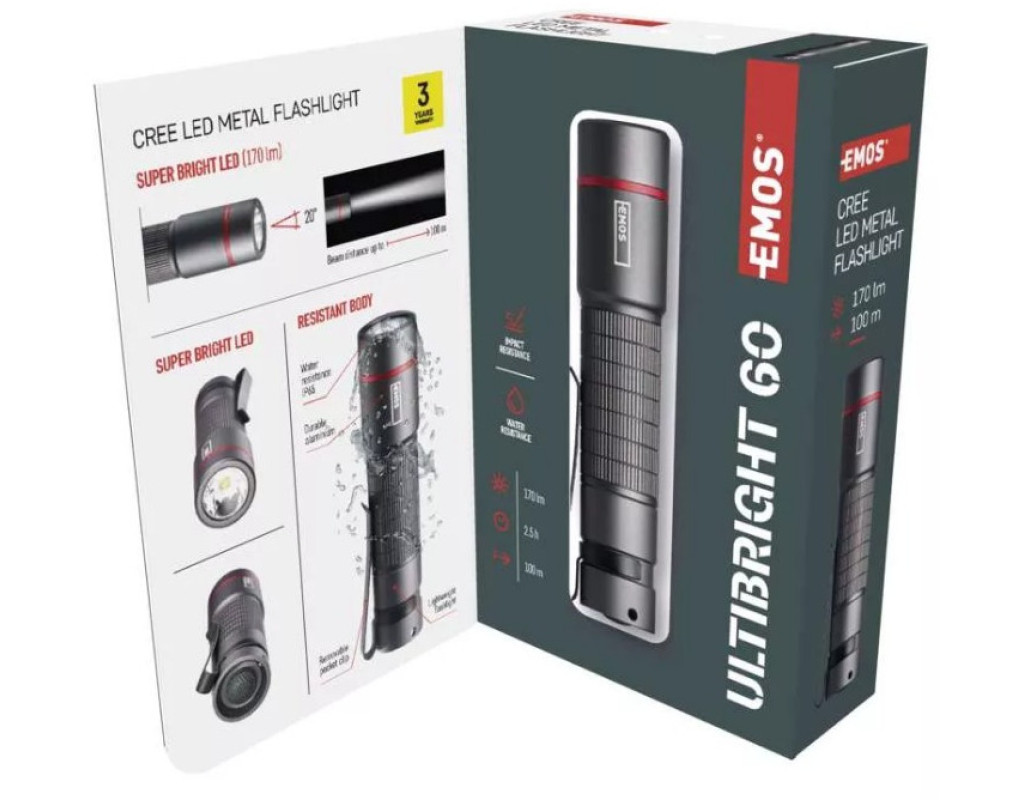 | Ліхтар EMOS P3160 170Lm 1AAA Metal є ідеальним прикладом поєднання інноваційних технологій і надійного виконання від чеського бренду EMOS. В цій моделі від ULTIBRIGHT серії втілено все найкраще, що може запропонувати сучасний ручний ліхтар. Цей компактний ліхтарик створено для тих, хто цінує ефективність і надійність. Легкий вагою всього 42 грами та довжиною лише 101 мм, ліхтар зручно розміщується в кишені або на ремені завдяки міцній кліпсі. Зручний ремінець для носіння на руці гарантує, що EMOS P3160 буде завжди під рукою, де б ви не знаходились. Ліхтар оснащений високоякісним Cree LED, що забезпечує яскравість 170 люмен і стабільний світловий потік з дальністю до 100 метрів. Навіть при максимальному режимі освітлення, який є стандартним для цього ліхтаря, він здатен випромінювати потужний промінь, достатній для різних умов, будь то нічний похід чи домашнє використання в випадку аварійного вимкнення світла. Корпус ліхтаря виконано з міцного металу, що надає йому не лише стильний вигляд, але й підвищену ударостійкість. Завдяки класу захисту IP65, ліхтар має повну вологонепроникність, що робить його ідеальним рішенням для використання в складних погодних умовах. Він витримує падіння з висоти до одного метра, тому ви можете бути впевнені в його надійності навіть у найекстремальніших ситуаціях. Джерелом живлення виступає батарейка формату AA, яка забезпечує до 2,5 годин безперервної роботи, що гарантує стабільну і тривалу експлуатацію без частих перерв на заміну елементів живлення. Ліхтар не потребує додаткових налаштувань фокусу завдяки гладкому відбивачу і AFS лінзі, що забезпечують рівномірний і яскравий світловий потік. Дизайн ліхтаря доповнений естетичним елементом у вигляді елегантного червоного кільця, що додає елегантності та впізнаваності. Колір чорного алюмінієвого корпусу надає преміальний вигляд і слугує відмінним доповненням до будь-якого наряду чи спорядження. EMOS - це більше, ніж просто виробництво ліхтарів; це довіра, яка базується на роках досвіду та інновацій. Заснована в 1991 році, компанія Emos spol. s.r.o. віддано працює над тим, щоб кожен продукт відповідав високим стандартам якості та задовольняв найвимогливіших користувачів. Головний офіс в Чехії об'єднує інженерів і дизайнерів, що забезпечують постійний розвиток лінійки продукції. Цей ліхтар - ваш надійний помічник у будь-якому поході, подорожі або повсякденному житті, забезпечуючи вас світлом і впевненістю в будь-якій ситуації. Де б ви не були, EMOS P3160 завжди готовий підтримати вас своїм потужним та яскравим світлом. |
