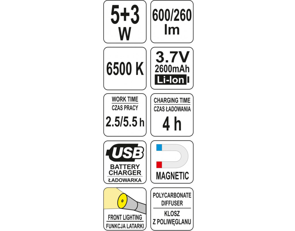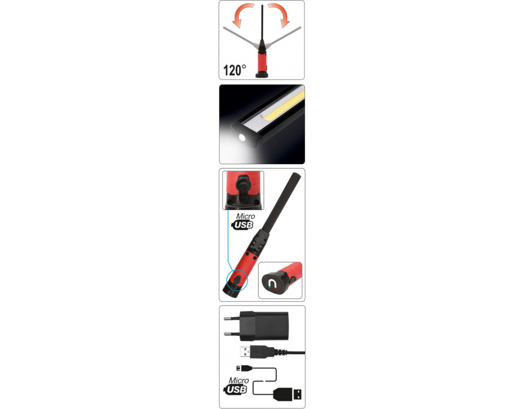 | Ліхтар Yato акумуляторний (YT-08518) — це ідеальний інструмент для професіоналів та аматорів, котрим потрібне надійне джерело світла для роботи у важкодоступних та темних місцях. Цей інспекційний ліхтар поєднує в собі високу японську якість та практичність, що робить його незамінним у вашій майстерні або на виїзді. Ліхтар оснащений сучасним LED джерелом світла, що забезпечує потужний світловий потік у 600 люмен при потужності 5 Вт. Із трьома режимами освітлення — максимальним, торцевим та економним — ви можете легко підібрати рівень яскравості, що найкраще відповідає вашим потребам. Це дозволяє знизити витрати енергії при мінімальному впливі на освітленість. Якість та довговічність — це те, що ви отримаєте разом із цим ліхтарем. Корпус виготовлений із комбінації алюмінію, пластику та гуми, що не лише забезпечує стійкість до ударів, а й вологонепроникність, дозволяючи використовувати його в різних умовах без ризику пошкодження. Незалежно від того, працюєте ви у вологому середовищі чи в місцях з підвищеним ризиком пошкоджень, ліхтар Yato надійно прослужить вам довго. Однією з особливих функцій цього ліхтаря є вбудований магніт, що дозволяє зручно закріплювати його на металевих поверхнях, звільняючи руки для інших завдань. Це особливо корисно для механіків, електриків та інших професіоналів, що працюють у тісних умовах. Довжина в 285 мм та вага 800 грамів роблять ліхтар зручним для ручного використання без зайвої втоми. Що стосується джерела живлення, ліхтар оснащений літій-іонним акумулятором з напругою 3,7 В і ємністю 2600 мАч. Це забезпечує тривалий час безперебійної роботи — від 2,5 до 5,5 годин залежно від обраного режиму. Ліхтар заряджається через micro USB кабель або мережевий зарядний пристрій на 230 В, що дозволяє швидко відновити його повну готовність всього за 4 години. Особливо варто відзначити увагу до деталей. Гладкий відбивач, вбудований у ліхтар, гарантує максимальну ефективність використання світлового потоку, а тонка, регульована верхня частина дозволяє освітлювати навіть найвіддаленіші та важкодоступні кути вашої робочої зони. Отже, ліхтар Yato (YT-08518) — це поєднання надійності, потужності та функціональності в одному пристрої. Його червоний колір додає естетичної привабливості, а виконання з високоякісних матеріалів забезпечить його тривалу службу навіть у найекстремальніших умовах. Незалежно від сфери вашої діяльності, це інструмент, який стане вашим незамінним помічником у різних ситуаціях. |