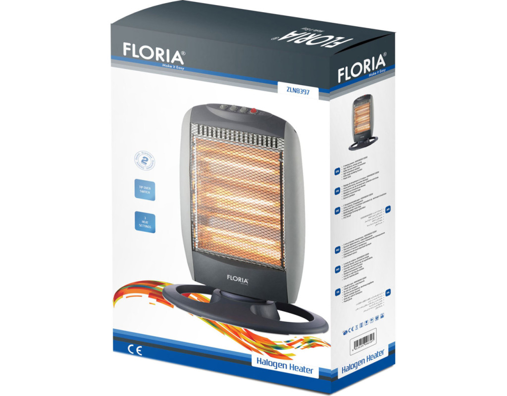| Інфрачервоний обігрівач FLORIA ZLN8397, потужністю 1200 Вт має 3 ступені 400 Вт/800 Вт/1200 Вт Переваги: