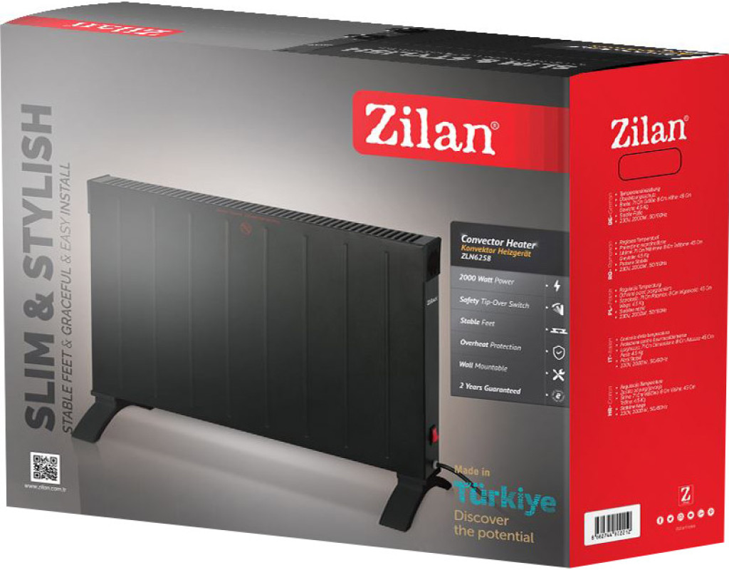 | Обігрівач Zilan ZLN6258 - це сучасне рішення для ефективного обігріву вашого дому чи офісу. Конвекторний обігрівач швидко створює комфортну атмосферу на площі до 20 м² завдяки потужності в 2000 Вт. Завдяки природній циркуляції повітря, обігрівач не піднімає пил і зберігає кисень у приміщенні, що робить його ідеальним для алергіків. Однією з головних переваг Zilan ZLN6258 є безшумна робота, що дозволяє використовувати пристрій у спальнях та офісах без жодних зайвих звуків. Унікальний закритий нагрівальний елемент забезпечує швидкий нагрів і тривалий термін служби. Функції безпеки на висоті: обігрівач оснащений захистом від перегріву та датчиком перекидання, що дозволяє уникнути небезпечних ситуацій. У разі перегріву або випадкового перекидання пристрій автоматично вимикається, забезпечуючи спокій під час його експлуатації. Універсальність використання обігрівача Zilan ZLN6258 вражає: його можна встановлювати як на стіну, так і на підлогу, завдяки комплекту ніжок і кріплень. Зручність транспортування забезпечується спеціальною ручкою та коліщатками, що дозволяють легко переміщувати пристрій у межах дому або офісу. Чорний колір корпусу додає елегантності та сучасного вигляду, що легко вписується в будь-який інтер'єр. Довжина кабелю 1.2 метра та компактні розміри (90х460х730 мм) дозволяють легко знайти місце для обігрівача у вашому просторі. При цьому вага лише 3 кг, що робить його ще більш мобільним. В комплекті з обігрівачем ви отримуєте всі необхідні аксесуари для його встановлення, включаючи ніжки та кріплення, а також детальну інструкцію з експлуатації, що дозволяє швидко налаштувати роботу пристрою. Zilan ZLN6258 - це не просто обігрівач, а енергоефективне джерело тепла, яке дарує затишок навіть у найлютіші морози. Оберіть якісне та надійне рішення для вашого дому вже сьогодні. |