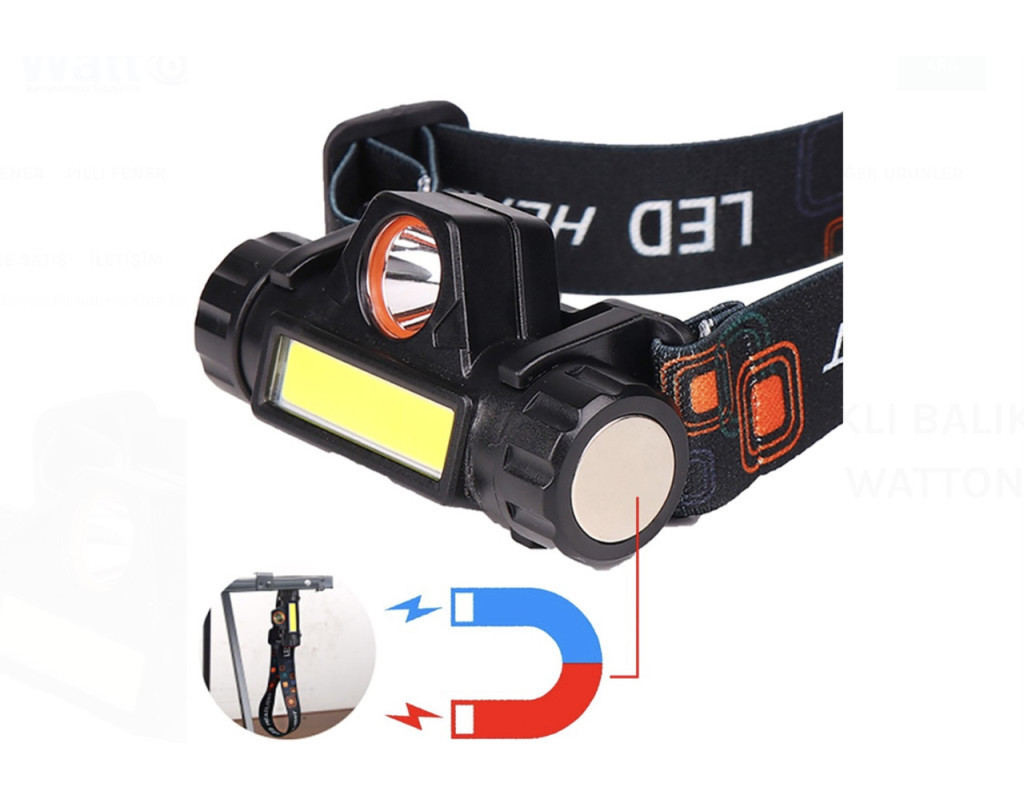 Дуже зручний водонепроникний налобний LED ліхтар на 2 режими роботи на акумуляторі з магнітним фіксатором WATTON WT-056.