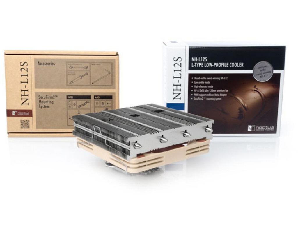 Noctua NH-L12S обладнаний одним встановленим 120 мм вентилятором. Контактний майданчик виготовлений з міді, відведення тепла здійснюється за допомогою 4 мідних теплових трубок. Noctua NH-L12S підтримує встановлення на платформу:
