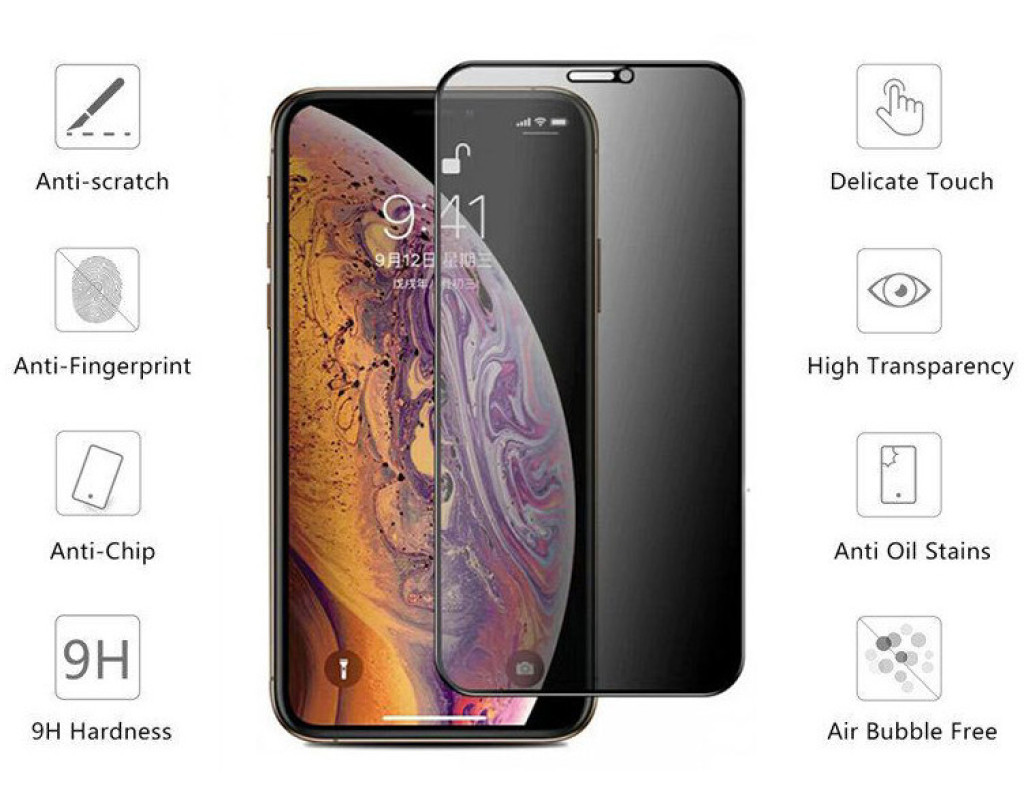 Це захисне скло має унікальне покриття, з фільтром конфіденційності, що дає змогу приховати інформацію на екрані вашого пристрою від сторонніх. Завдяки цьому покриттю, екран смартфона буде видно тільки під прямим кутом, а у разі погляду збоку розгледіти на ньому щось, а поготів текст, буде неможливо. Дуже корисно в громадському транспорті або серед великої кількості людей, якщо ви не любите, коли хтось спостерігає за тим, що відбувається на вашому смартфоні.