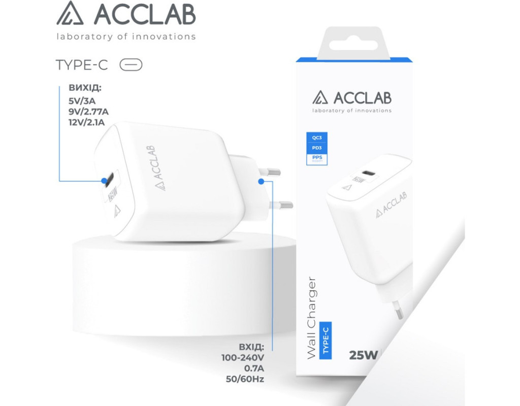 | Зарядний пристрій ACCLAB AL-TC125 є втіленням інновацій та надійності в світі зарядних пристроїв. Завдяки порту USB Type-C ви можете швидко заряджати широкий спектр гаджетів, забезпечуючи їх постійною енергією без жодних проблем. Цей адаптер пристосований до живлення від мережі, роблячи його універсальним рішенням для дому та офісу. Завдяки технології SMART IC, зарядний пристрій розпізнає тип вашого гаджета і автоматично підбирає оптимальний режим зарядки. Це істотно покращує ефективність та швидкість заряджання, не завдаючи шкоди акумулятору. Підтримка протоколів Quick Charge 3.0, Power Delivery 3.0 та PPS дозволяє заряджати смартфони та інші пристрої значно швидше. З максимальною вихідною потужністю 25 Вт та струмом до 3 А, ваші девайси завжди будуть готові до використання у найкоротший час. Ще однією перевагою ACCLAB AL-TC125 є наявність системи захисту від коротких замикань і перепадів напруги. Це забезпечує безпеку вашого пристрою під час заряджання, знижуючи ризик будь-яких пошкоджень. Навіть за вимогливих умов експлуатації ви можете бути впевнені в надійності цього адаптера. Цей зарядний пристрій є ідеальним вибором для тих, кому потрібна швидка, якісна та безпечна зарядка. Високий рівень технологічності, поєднаний з естетичним дизайном, робить ACCLAB AL-TC125 незамінним помічником у повсякденному житті. Підкреслюючи водночас його універсальність та сучасний підхід до зарядки, цей адаптер стане вашим надійним партнером на кожен день. |