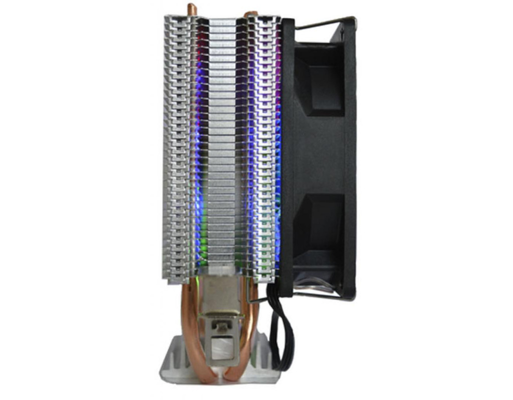 Для процесорів - INTEL, AMD, сокет - FM1, FM2+, AM2, AM2+, FM2, AM3, AM3+, AM4, 775, 1150, 1151, 1155, 1156, 1366, матеріал радіатора - алюміній, діаметр вентиляторів - 90 мм, Максимальна частота обертів - 2000 об/хв, Тип підшипників - підшипник кочення, рівень шуму - 25 dB, роз'єми живлення - 3-pin, Підсвічування - RGB, 2 теплові трубки