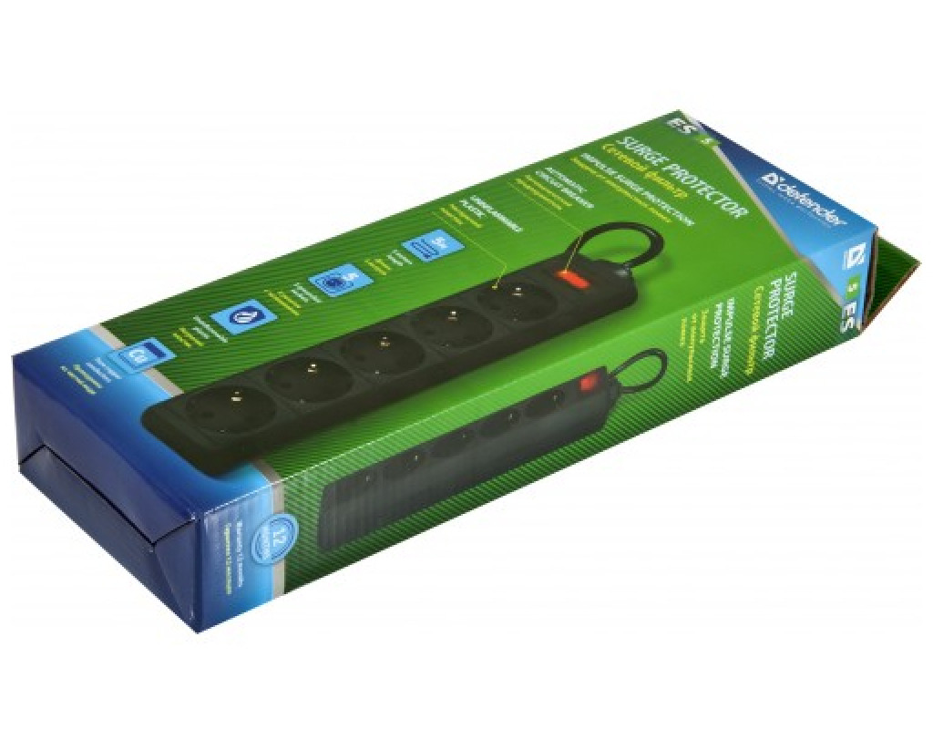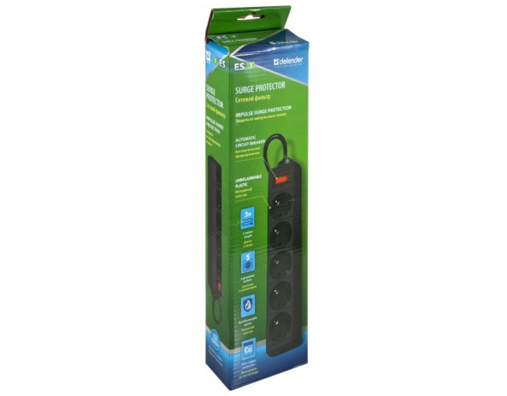 | Мережевий фільтр живлення Defender ES 1.8m 5 роз. black (99484) — пристрій початкового рівня, економічний варіант вирішення проблеми захисту електроживлення. Призначений для підключення широкого спектру побутової та електронної техніки, включаючи чайники і електронагрівачі. Мережевий фільтр Defender ES на "борту" має п'ять розеток євростандарт, захищає електронну техніку від короткого замикання, перевантажень по струму і імпульсних перешкод. |