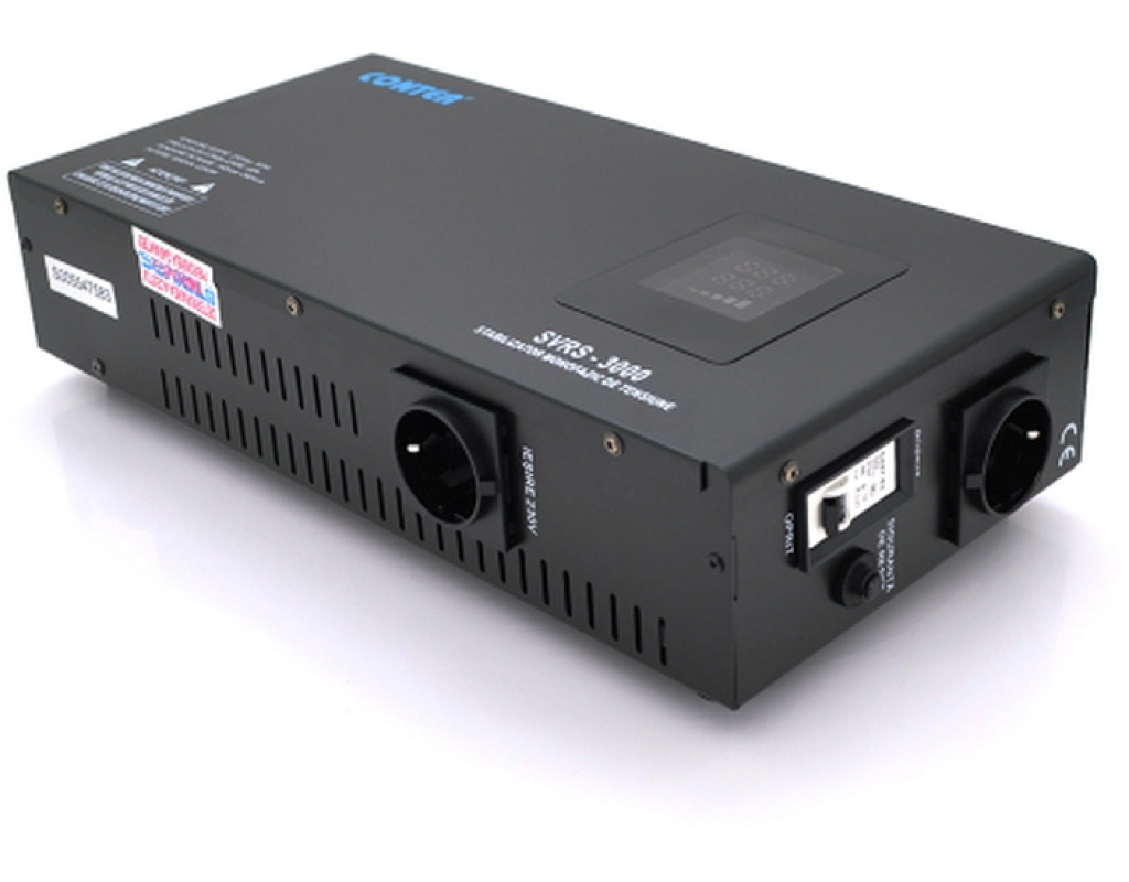 Conter CR-SVRS-3000 – однофазний стабілізатор напруги релейного типу з номінальною потужністю 2250 Ватт і повною 3000 ВА. Напруга на вході допустима в широких рамках від 150 до 270 Вольт. На виході ж маємо 230 Вольт з високою точністю стабілізації з відхиленням не більше 8-ми відсотків. Швидкість стабілізації при зміні напруги на вході на 10 відсотків становить менше 1 мілісекунди. Робоча частота 50 - 60 Гц. Під підключення техніки йдуть дві Schuko розетки. Важливі показники під час роботи подаються через LED дисплей. Стабілізатор Conter CR-SVRS-3000 комфортно себе почуває в роботі при температурах середовища в діапазоні від 0 до +40 градусів за Цельсієм. |