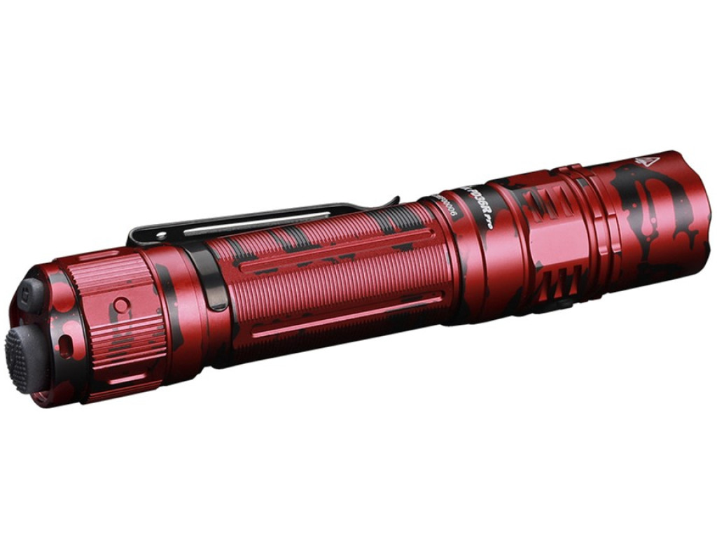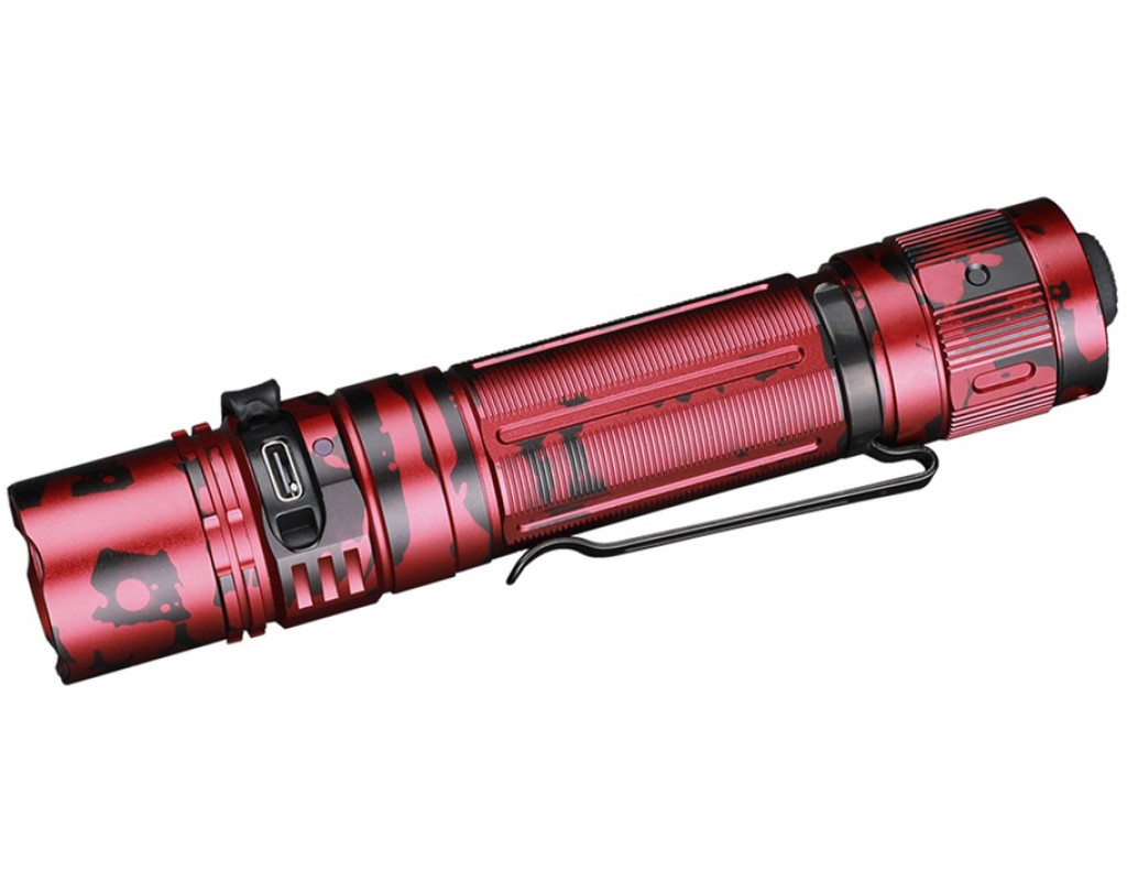 Корпус виготовлений із зносостійкого алюмінієвого сплаву А6061-Т6, який відрізняється міцністю та стійкістю до механічних впливів. Метал не деформується під час ударів та гарантує захист внутрішньої електроніки у разі падіння ліхтаря з висоти близько 1.5 метрів. Корпус має повну герметичність – про це говорить клас вологозахисту IP68, що дозволяє багаторазово занурювати пристрій під воду без загрози для його працездатності. Особливість моделі – яскраво-червоний відтінок корпусу, що виділяє модель на тлі аналогів у класичному чорному кольорі. Доповнення у вигляді кліпси чорного кольору дозволяє кріпити ліхтар до одягу. |