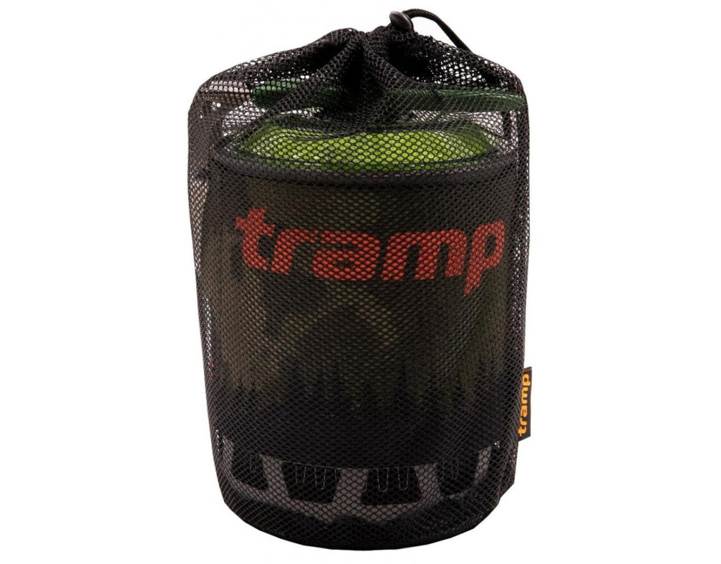 Інтегрована система приготування їжі Tramp TRG-049 складається з казанка на 800 мл в неопреновому чохлі з вбудованим в вітрозахисний екран радіатором - теплообмінником і газового пальника, що підключається до нього, а також підставки під газові балони і таганка для використання іншого посуду в режимі звичайного пальника.