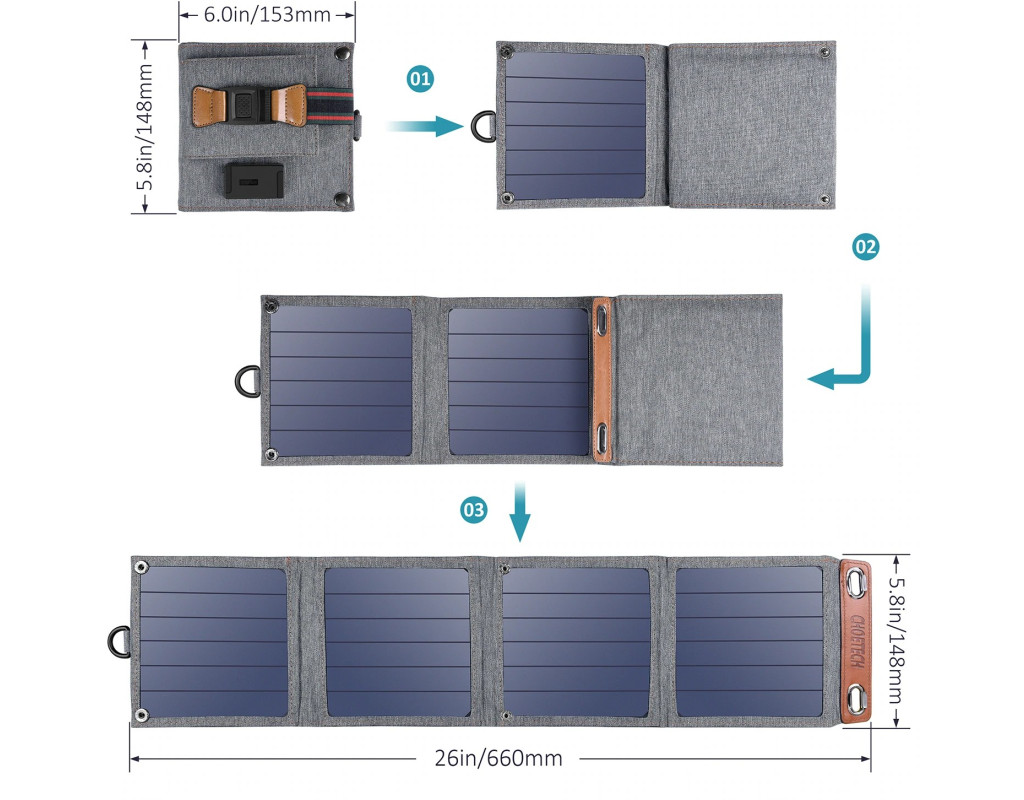 | Зручний сонячний зарядний пристрій з ефективністю до 23,5%.