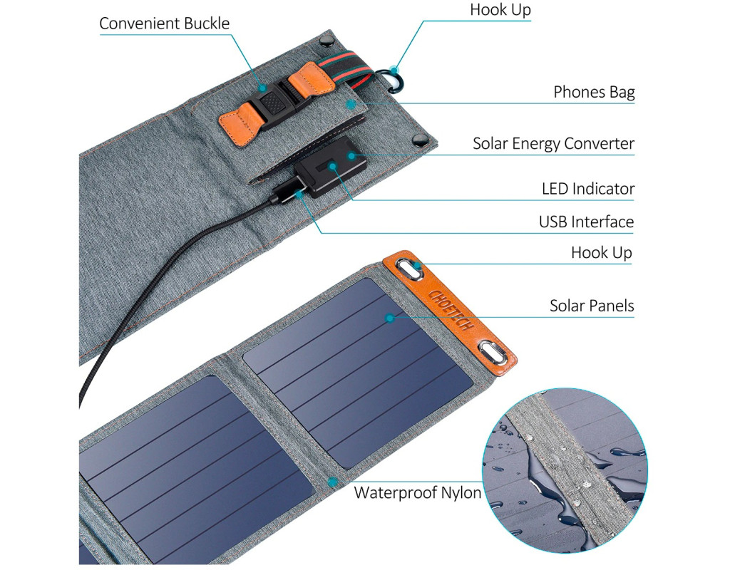 Крім того, ця портативна сонячна панель потужністю 14 Вт має порт USB, сумісний з більшістю пристроїв. Заряджайте за допомогою нього свій смартфон та планшет, де б ви не знаходилися. Для туристів Ця сонячна панель потужністю 14 Вт може заряджати пристрої через порт USB. Портативна сонячна батарея – чудовий вибір для кемпінгу, караванінгу, а також хороша підтримка для любителів тривалих походів – гірських та інших. Безкоштовна енергія Масив із високоефективними сонячними панелями, які перетворюють до 23,5% енергії. Цей портативний, зручний пристрій, практично без вашого нагляду, автоматично перетворює сонячне світло на чисту та безкоштовну енергію. Оптимальна продуктивність Завдяки компактній, складній та зручній ручці сонячний зарядний пристрій Choetech легко зберігати та знімати у будь-якому місці. Продумана конструкція з опорами робить отриманий кут дозволить зарядному пристрою максимально піддаватися сонячним променям. Властивості: Елегантний зовнішній вигляд 1 порт USB Водонепроникний Складна та переносна форма Розміри у складеному вигляді: 14.8х15.3 см Потужність: 14 Вт Вага: 0,35 кг Макс. напруга: 5V-2.1A |