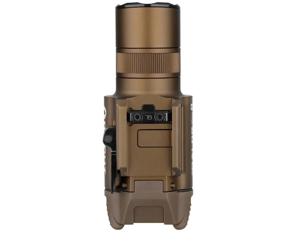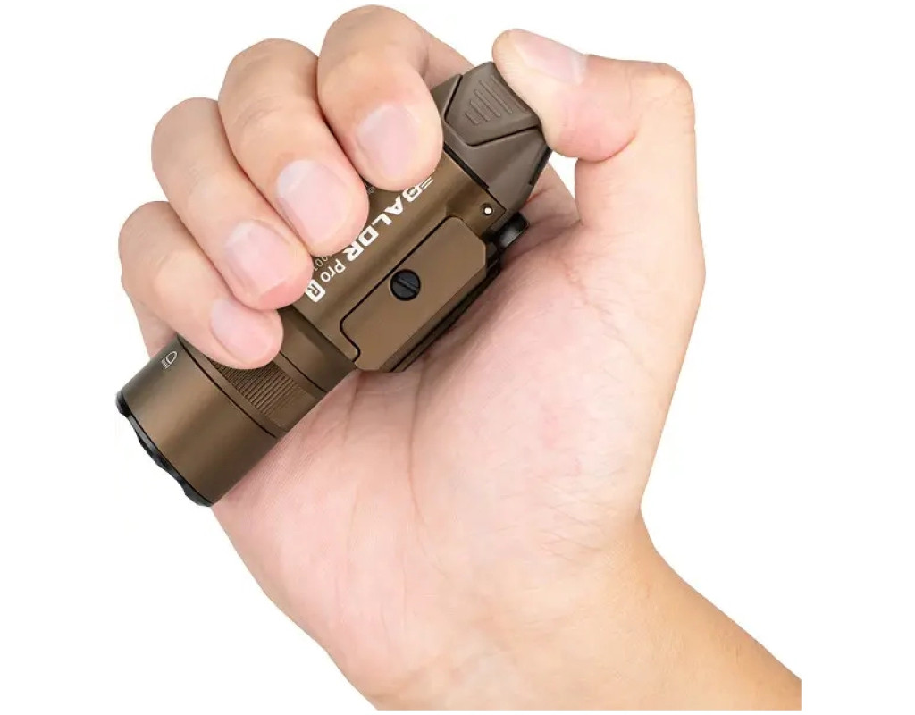 | Ліхтар Olight Baldr Pro R є удосконаленою версією популярної підствольної моделі Baldr Pro. Основною відмінністю є можливість заряджання, без знімання акумулятора. Ліхтар поставляється із вбудованим літій-полімерним акумулятором ємністю 1000 mA/h, який заряджається від магнітного USB-кабелю Olight MCC. Магнітний кабель самоцентрується, необхідно лише піднести його до місця встановлення, він приєднається за допомогою магніту та розпочнеться процес зарядки. Ще однією особливістю моделі Baldr Pro R є наявність двох режимів яскравості: на 1350 люмен з максимальною дальністю світлового потоку до 200 метрів та 300 люмен, чого раніше не було на жодному з ліхтарів серії PL та Baldr. Управління також зазнало змін — тепер воно здійснюється шляхом повороту магнітного кільця на голові ліхтаря: біле світло, біле світло-зелений лазер, зелений лазер окремо. Корпус став більш плоским, що стало можливим завдяки перенесенню лазерного модуля, який тепер інтегрований в голову ліхтаря. Оптична частина складається з високоефективної TIR-лінзи, що знаходиться під мінеральним склом і світлодіода CREE XHP-35 HI з нейтральним відтінком світла. Ліхтар встановлюється на планку Picatinny або Weaver, кріплення інтегроване швидкознімне. Управління: |