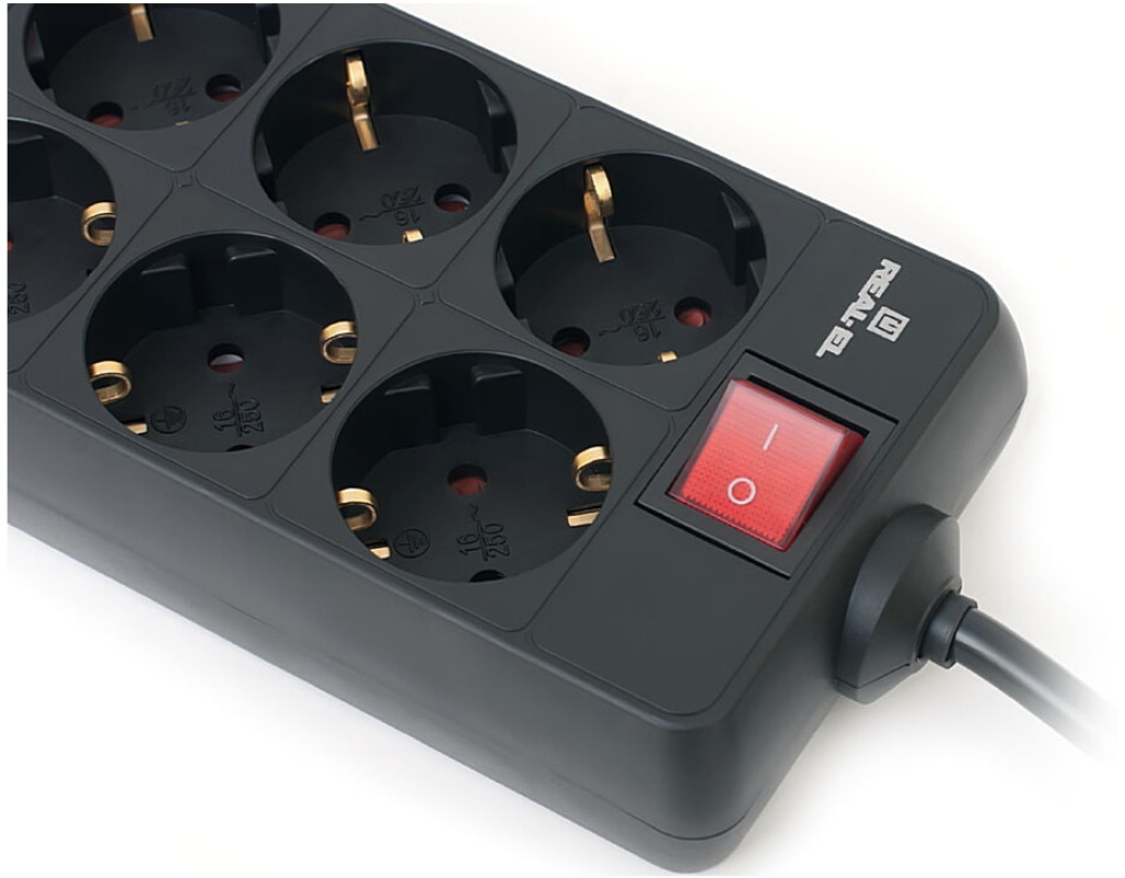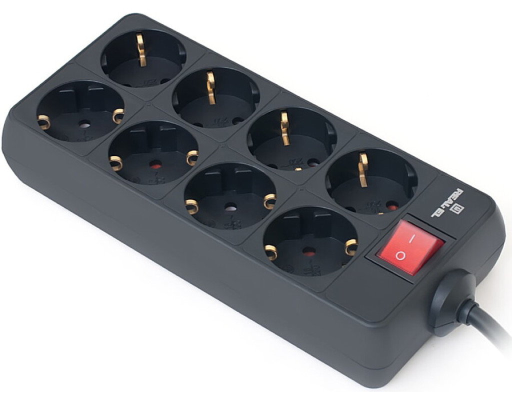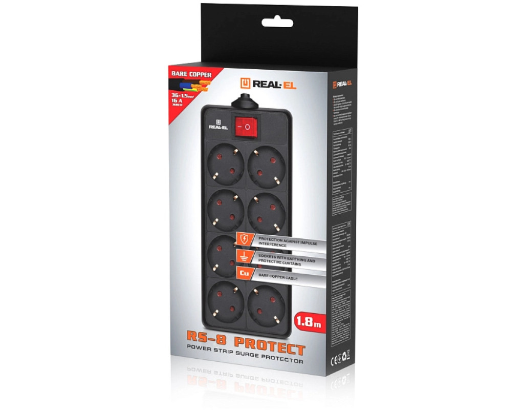 Мережевий фільтр-подовжувач REAL-EL RS-8 Protect призначено для підключення електроприладів до електромережі та забезпечення захисту їх від перевантаження.