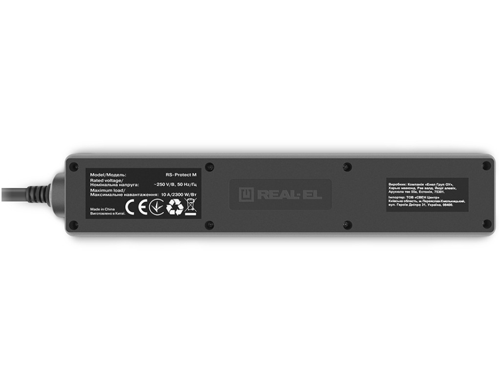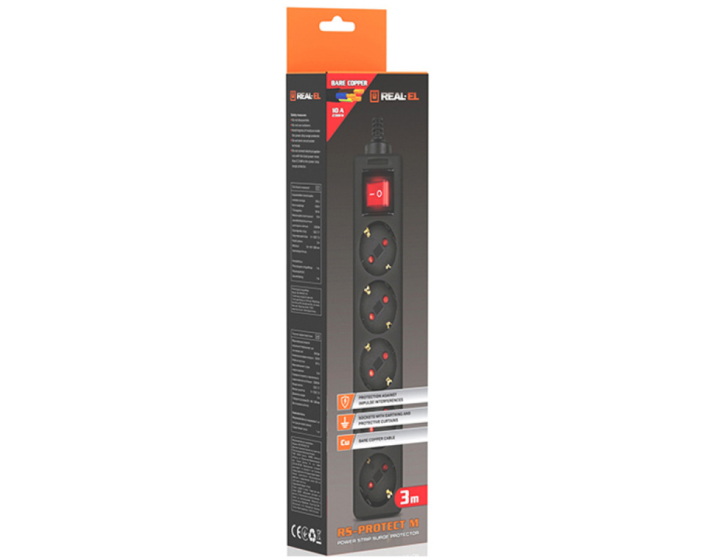 Мережевий фільтр-подовжувач REAL-EL RS-PROTECT M призначений для підключення електроприладів до електромережі та забезпечення їх захисту від навантаження. Загальний двополюсний вимикач із вбудованим запобіжником та світловою індикацією.