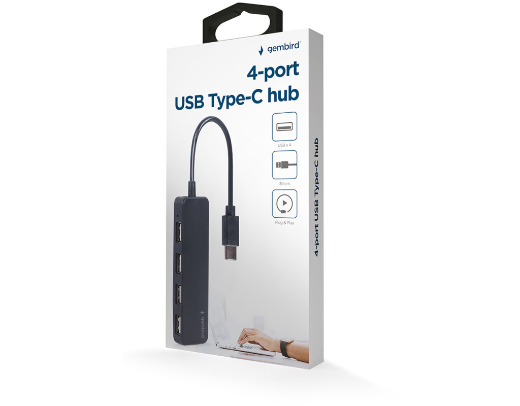 USB-хаб Gembird розширює можливості підключення вашого сучасного ноутбука чи комп'ютера у тих випадках, коли на ньому не вистачає USB-портів для периферійних пристроїв або вони розташовані незручно. Сам USB-хаб підключається до ноутбука через порт USB Type-C. |