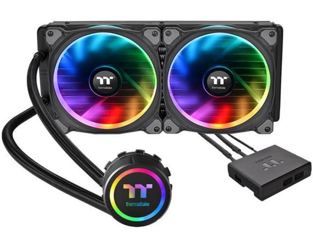 Thermaltake Floe Riing RGB 280 TT Premium Edition — це обслуговувальна система рідинного охолодження лінійки «All-in-One» з двосекційним радіатором і вентиляторами Riing Plus RGB TT. Вона створена спеціально для комп'ютерних ентузіастів і буде чудовим вибором тих користувачів, яким потрібне більш просунуте, порівнюючи з повітряним кулером, ефективне рішення для охолодження навіть дуже продуктивного сучасного процесора. І щоб водночас не потрібно було б турбуватися про можливі проблеми сумісності або браку необхідних запчастин у комплекті, правильної кількості фітингів або довжини з'єднувальної трубки. До комплекту Floe Riing RGB 280 TT PE входять компоненти, що відповідають критеріям оптимального співвідношення ціни та якості із широкого асортименту продукції Thermaltake. Сполучений із вбудованою потужною помпою процесорний водоблок Floe Riing RGB 280 TT PE зроблений із міді з масивною основою для найкращого відведення тепла від чипа центрального процесора. Завдяки продуктивному насосу холодоагент швидко проходить уздовж всього контуру, що сприяє ефективному охолодженню CPU, відвідні, армовані чорним обпдетенням, шланги гарантують максимальну міцність і зносостійкість впродовж усього терміну експлуатації. Вбудований у кришку помпи модуль LED-підсвічування синхронізований з іншими пристроями через комплектний контролер. 280 мм радіатор системи забезпечує високу площу розсіювання. Два запатентованих 140-мм кулери Riing Plus RGB TT PE обладнані 12 кольоровими світлодіодами, що дають змогу реалізовувати численні світлові ефекти за вашим задумом (кожен під'єднується через спеціальний контролер і керується фірмовим ПЗ Riing Plus RGB Software). Ці вентилятори з гідравлічним підшипником і продуманою формою лопатей забезпечують ідеальний баланс між рівнем шуму й ефективністю охолодження. Для максимального ККД системи на радіатор можна встановити до чотирьох подібних вертушок (по дві з кожного боку). Thermaltake Floe Riing RGB 280 TT Premium Edition підходить для встановлення на більшість сучасних платформ навіть без використання спеціальних інструментів. Це готове рішення від Thermaltake з монтажем якого впорається раніше незнайомий із такими системами користувач. |