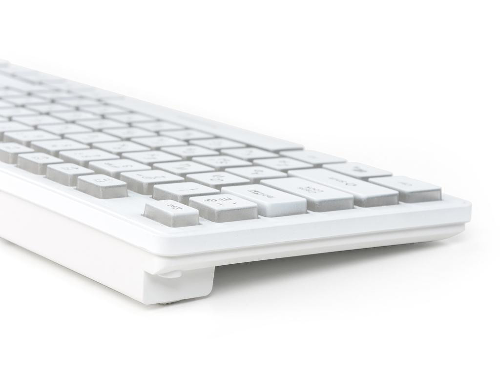 KB410 — якісна клавіатура від Vinga з інтерфейсом USB. Вона не відноситься до класу ігрових, але відмінно підійде до кіберспортивної збірки ПК. Верхня панель освітлюється зсередини яскравими різнокольоровими лампами, тому вже одним своїм виглядом може підняти вам настрій. Модель підключається до комп'ютерів і лептопам за допомогою кабелю довжиною 150 см. Всього у виробі є 104 клавіші, серед яких є повний ряд кнопок F, а також комплекс калькуляції NumPad. Функціонал пристрою розрахований на українську, російську та англійську розкладки, тому на нього нанесена розмітка з буквами з відповідних алфавітів. KB410 має мембранну конструкцією, тобто в ній поверх контактів прокладена цілісна плівка з щільного і еластичного матеріалу. Цей елемент служить додатковим захистом для мікросхем. Він не тільки перешкоджає подряпинам, але і певною мірою є бар'єром для рідин: якщо ви випадково проллєте на корпус який-небудь напій, і він просочиться між клавішами, мембрана затримає краплі на собі. Проте, виріб не є водонепроникним в повному сенсі цього поняття. Клавіатура має стандартні розміри і важить всього близько 413 грам. Дизайн пристрою відрізняється суворою геометрією форм. |