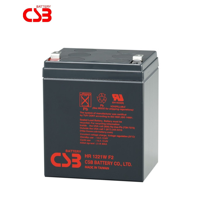 CSB (HR1221W F2) - це свинцево-кислотна, не обслуговуюча батарея з номінальною напругою 12В і місткістю 5 Ач. Також ця батарея характеризируется низьким уровенем саморазряду. Призначення: джерела безперебійного живлення, централі охоронні сигналізації. Залежно від функціонування джерела безперебыйного живлення, акумуляторні батареї CSB (HR1221W F2) при необхідності автоматично заряджаються в будь-який час, коли джерело підключене до мережі. |