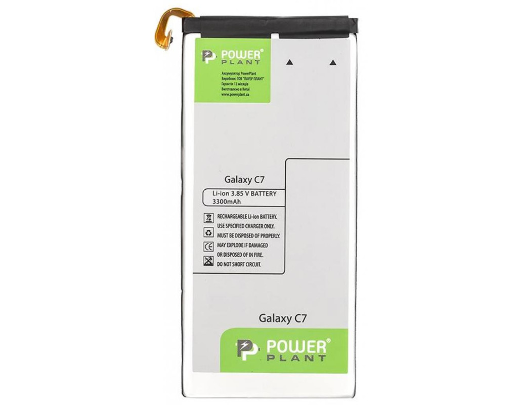 Акумуляторна батарея PowerPlant Samsung Galaxy C7 (EB-BC700ABE) 3300mAh (SM170418) - це компактна, стабільна і дуже надійна акумуляторна батарея, вона допоможе вам залишатися завжди на зв'язку у відрядженнях і заміських поїздках. Це досить маленький, легкий не вибагливий до періодичності зарядки акумулятор, так як у нього повністю відсутній ефект пам'яті. Акумулятори PowerPlant мають контролер заряду, розряду і короткого замикання, що гарантує довгу і безпечну роботу Вашого акумулятора. Вибираючи PowerPlant Ви отримаєте 100% якісний акумулятор для надійної і тривалої роботи Вашого мобільного або КПК. Дане українське підприємство PowerPlant було утворено в 2007 році. Асортимент продуктів, що випускаються під торговою маркою PowerPlant, складається з таких аксесуарів для відео-, фототехніки і мобільної електроніки, як блоки живлення, акумулятори та зарядні пристрої, а також, з універсальних мобільних пристроїв, і фото і відео кабелів. Своїми головними пріоритетами компанія PowerPlant називає повне задоволення бажань, потреб і потреб своїх споживачів. |