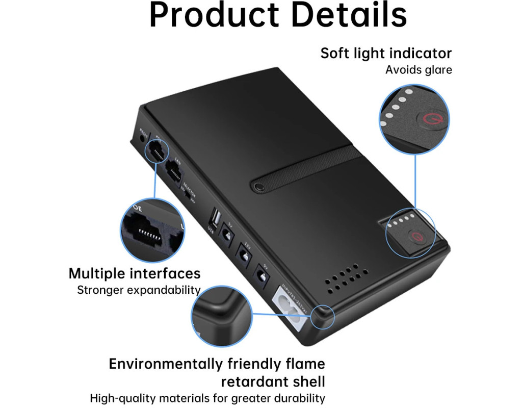 ДБЖ DC1018P – це компактне та функціональне джерело безперебійного живлення, спеціально розроблене для забезпечення безперервної роботи вашого мережевого обладнання, такого як роутери, комутатори, IP-камери та інше.