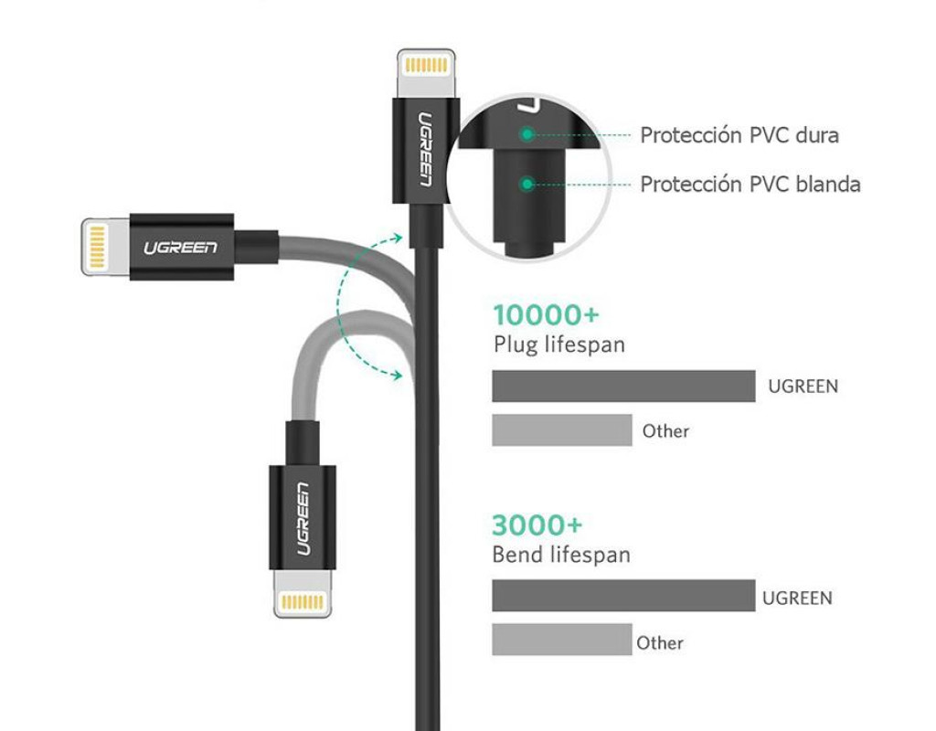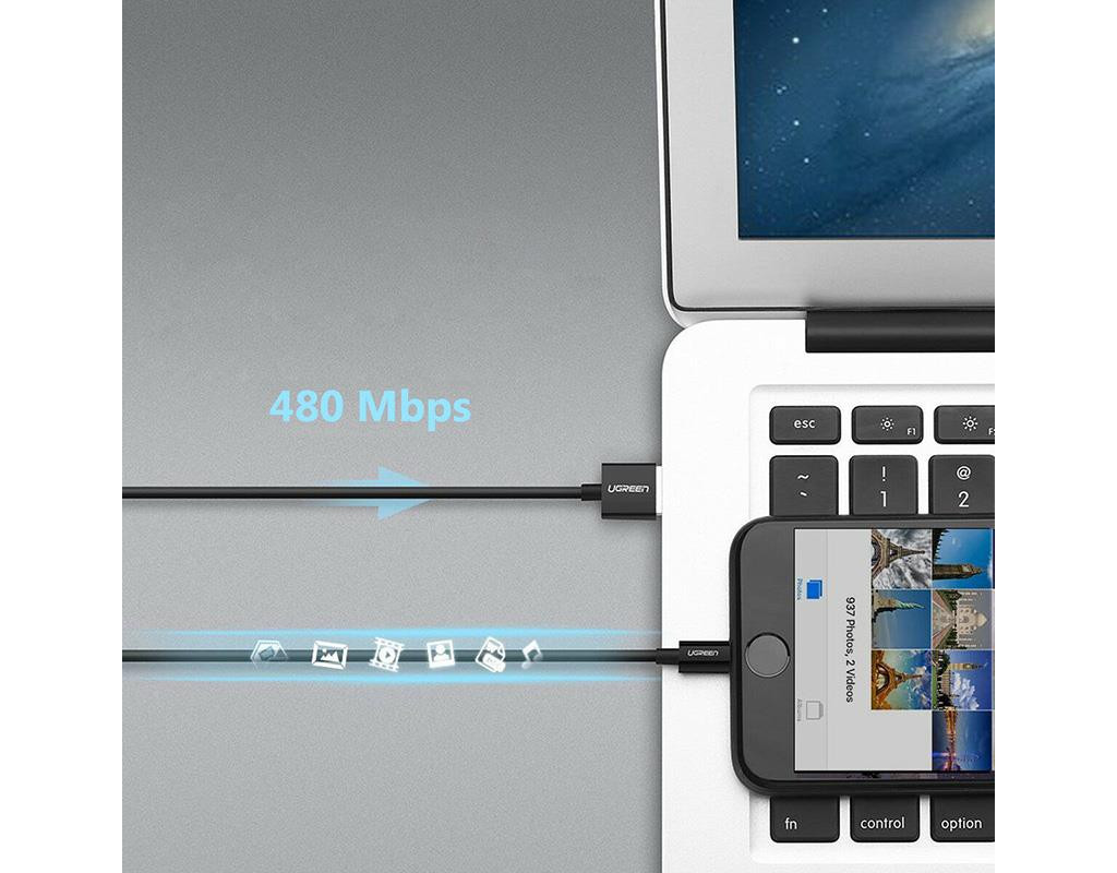 | Ugreen USB AM-Lightning M - сертифікований MFі кабель для зарядки та передачі даних, який стане незамінним аксесуаром для власників iPhone, iPad та iPod. Він підтримує швидку зарядку до 2,4А та має швидкість обміну даними 480 Мбіт/с.