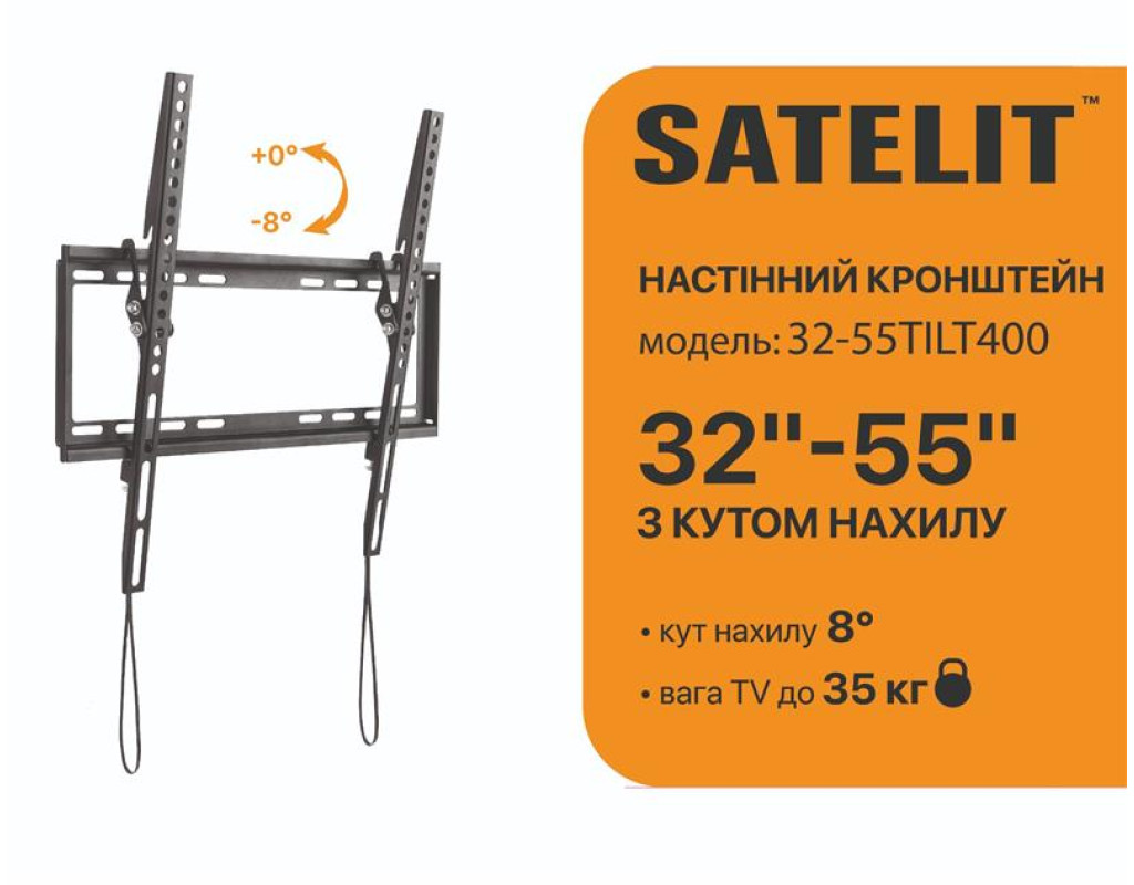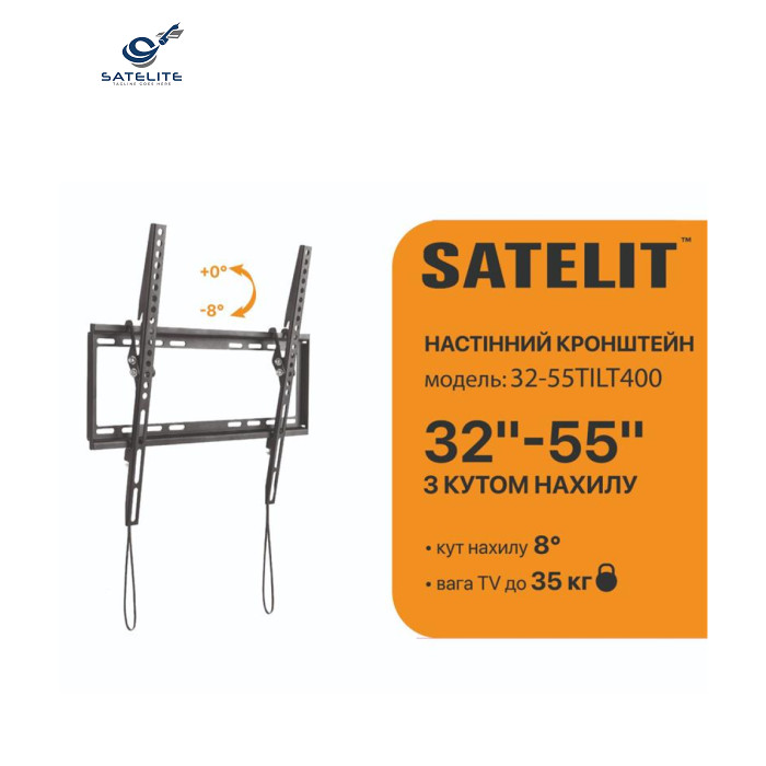 | Кронштейн із кутом нахилу SATELIT 32-55TILT400 завдяки своїй конструкції, забезпечує максимальний комфорт при перегляді контенту дозволяючи змінювати кут нахилу екрану до 8°.