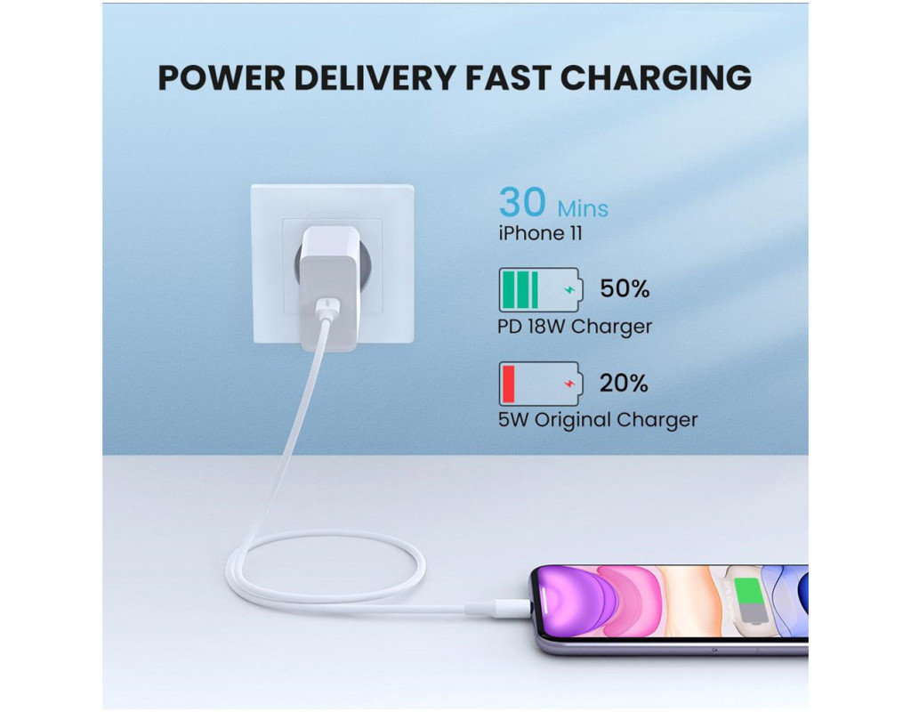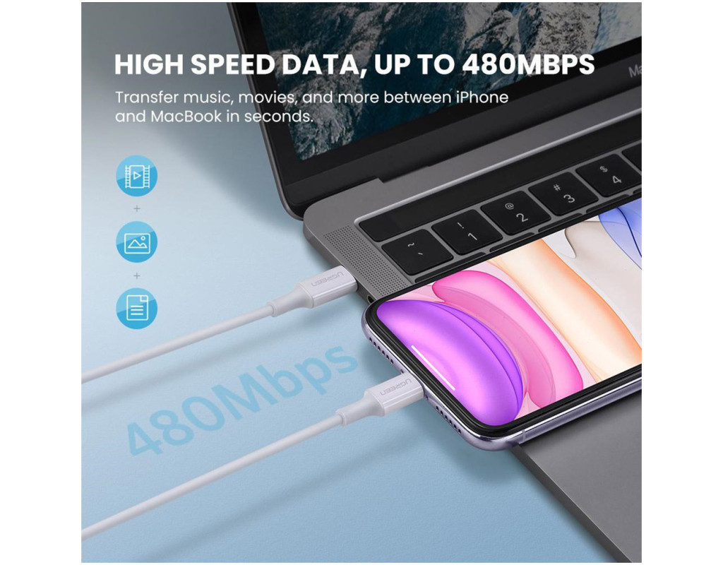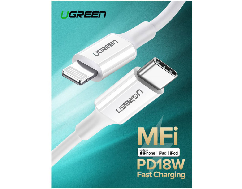 Дата кабель USB-C to Lightning 2.0m US1713A Nickel Plating ABS Shell White Ugreen (60749)