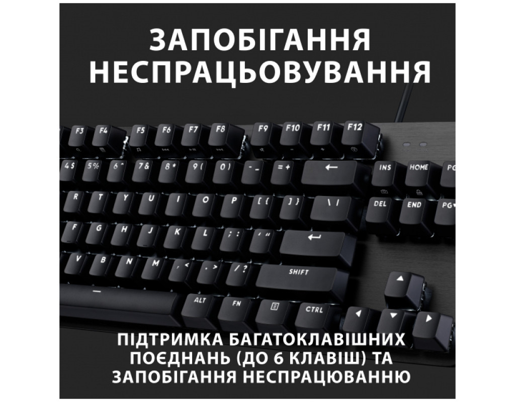 | Створено для ігор Від механічних перемикачів з тактильним відгуком — до PBT-клавіш, підтримки багатоклавішних поєднань (до 6 клавіш) та запобігання фантомним натисканням: клавіатура G413 TKL SE є оптимальним поєднанням високої продуктивності та портативності. Цей пристрій у стилі мінімалізму (без цифрового блоку), виконаний із міцного алюмінієвого сплаву, виглядає, незважаючи на компактні розміри, вельми гідний і відрізняється надійністю. Механічні перемикачі з тактильним відгуком G413 TKL SE відрізняється розкладкою без цифрового блоку та неперевершеною продуктивністю. Механічні перемикачі ігрового класу з тактильним відгуком забезпечують точну та швидку зворотний зв'язок у момент спрацьовування, що важливо у змаганнях та іграх-шутерах від першої особи, де часто потрібно діяти блискавично. PBT-клавіші Міцні ковпачки забезпечують надійне натискання та бездоганне спрацьовування клавіш. Клавішні ковпачки для моделі G413 TKL SE виготовлені з високоякісного полімеру PBT - найкращого на сьогодні матеріалу. PBT чудово захищає клавіші від зносу та впливу температур протягом усього терміну їхньої служби. Для ігрової клавіатури це має значення. Світлодіодна підсвітка |