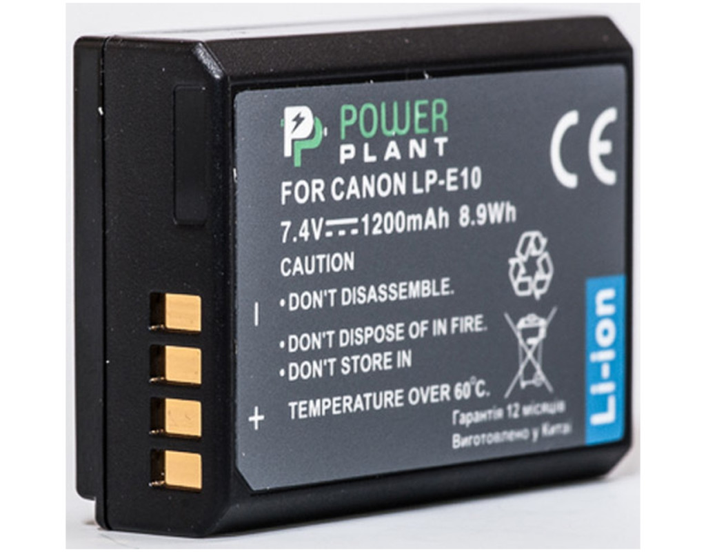 | Сучасна літієво-іонна батарея Canon LP-E10 PowerPlant (DV00DV1304) призначена для фото і відеокамер і забезпечує тривалий час автономної роботи Вашого пристрою. Акумулятор PowerPlant це повноцінний аналог оригінального акумулятора. У виробництві використані тільки високоякісні елементи живлення і японські чіпи оригінальних виробників, тому акумулятор володіє високою енергетичною щільністю, низьким саморозрядом, зберігає заряд навіть при тривалому використанні, а відсутність "ефекту пам'яті" і здатність швидко перезаряджати його не досягаючи повної розрядки, можна віднести до ключових переваг. Фірма PowerPlant гарантує безпеку використання батареї з Вашим фотоапаратом або відеокамерою. Акумулятор можна використовувати замість оригінального. Переваги літій-іонної батареї: - найбільша щільність енергії з усіх різновидів акумуляторів - як об'ємна, так і вагова - напруга на елементі живлення - 3,6В, що в 3 рази вище, ніж у NiMH і NiCd акумуляторів і майже в 2 рази вище, ніж для свинцево-кислотних акумуляторів - швидкий процес заряду батарей - до 90% ємності за 30-40 хвилин - високий показник ресурсу - понад 1000 циклів розряду/заряду |