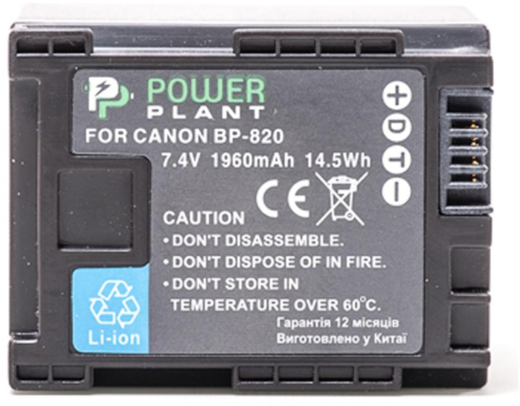 | Акумулятор PowerPlant Canon BP-820Chip це сучасна літієво-іонна батарея для фото і відеокамер, яка забезпечить тривалий час автономної роботи Вашого пристрою. Акумулятор PowerPlant це повноцінний аналог оригінального акумулятора Canon BP-820 Chip . У виробництві використані тільки високоякісні елементи живлення і японські чіпи оригінальних виробників, тому акумулятор володіє високою енергетичною щільністю, низьким саморозрядом, зберігає заряд навіть при тривалому використанні, а відсутність "ефекту пам'яті" і здатність швидко перезаряджати його не досягаючи повної розрядки, можна віднести до ключових переваг. Фірма PowerPlant гарантує безпеку використання батареї PowerPlant Canon BP-820 Chip c Вашим фотоапаратом або відеокамерою. |