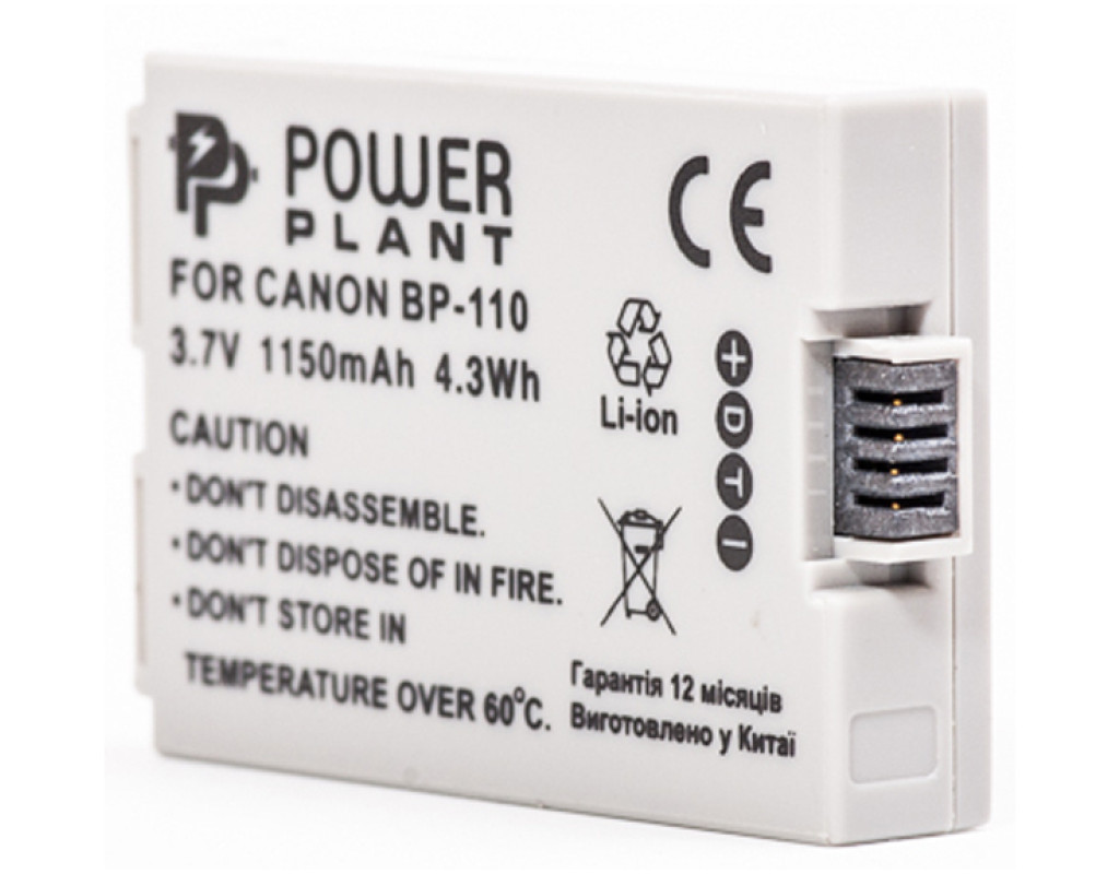 | Акумулятор PowerPlant Canon BP-110 Chip (DV00DV1384) - це сучасна літієво-іонна батарея для фото і відеокамер, яка забезпечить тривалий час автономної роботи Вашого пристрою. Акумулятор PowerPlant це повноцінний аналог оригінального акумулятора. У виробництві використані тільки високоякісні елементи живлення і японські чіпи оригінальних виробників, тому акумулятор володіє високою енергетичною щільністю, низьким саморозрядом, зберігає заряд навіть при тривалому використанні, а відсутність "ефекту пам'яті" і здатність швидко перезаряджати його не досягаючи повної розрядки, можна віднести до ключових переваг. Фірма PowerPlant гарантує безпеку використання батареї PowerPlant c Вашим фотоапаратом або відеокамерою. |